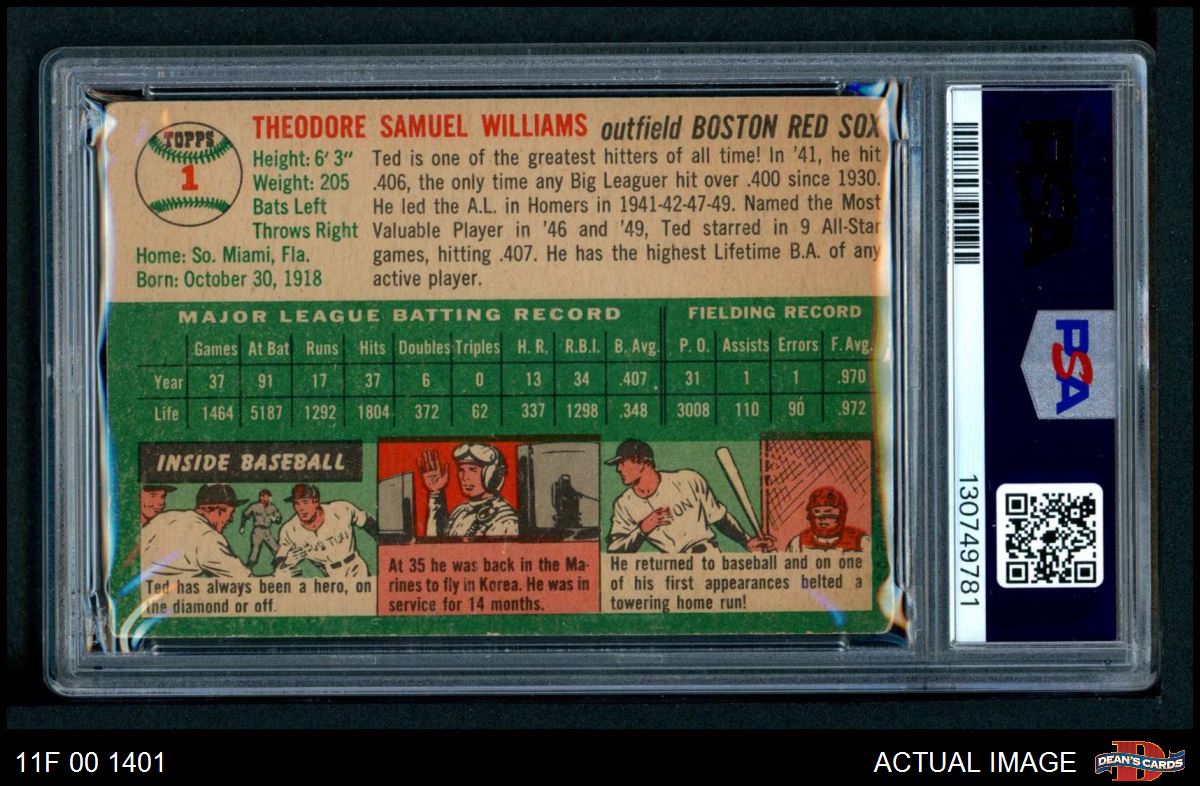 1954 Topps #1 WHT Ted Williams PSA 1.5 - FAIR