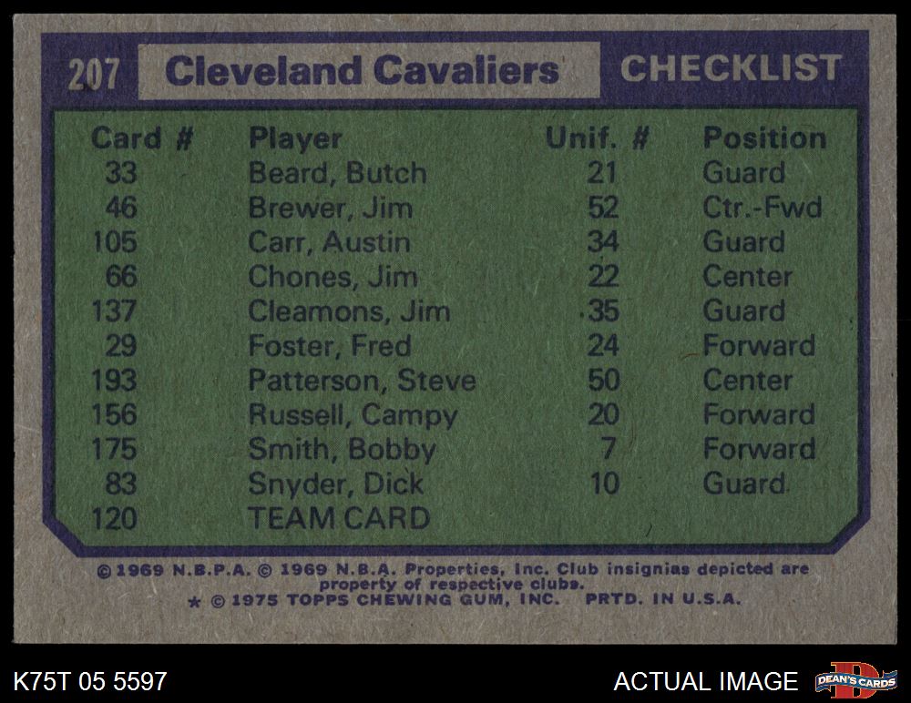 1975 Topps #207 Cleveland Cavaliers 5 - EX