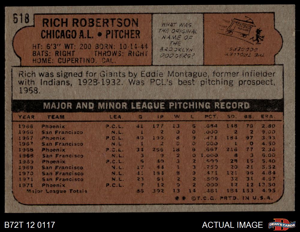 1972 Topps #618 Rich Robertson 5 - EX