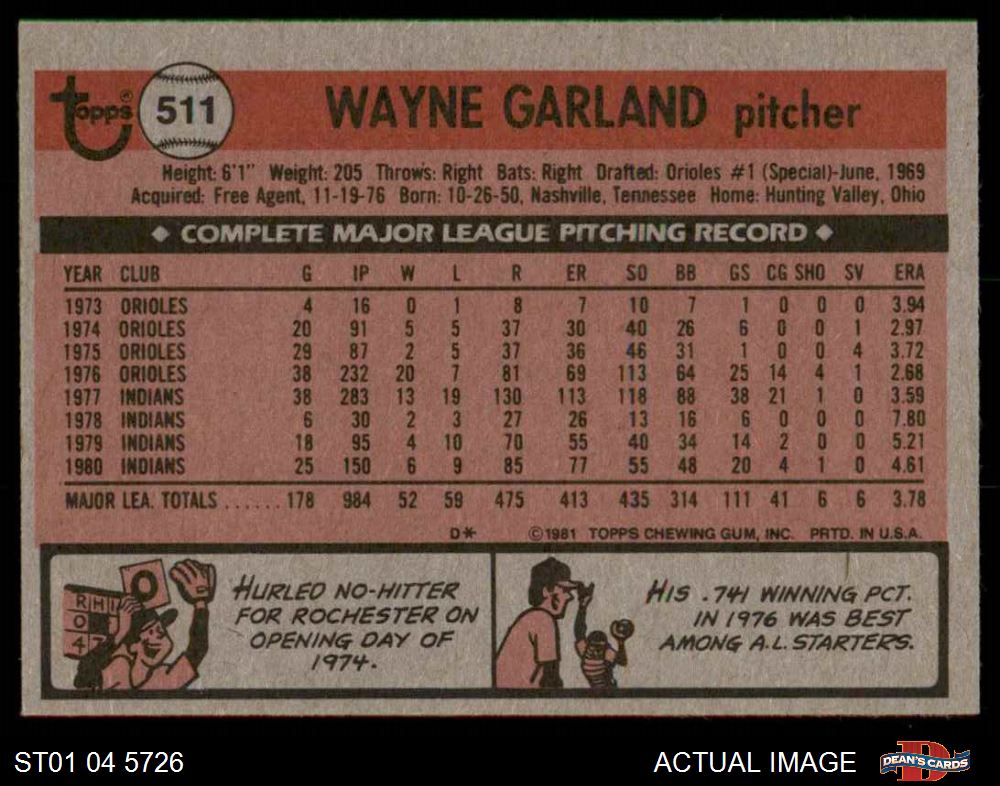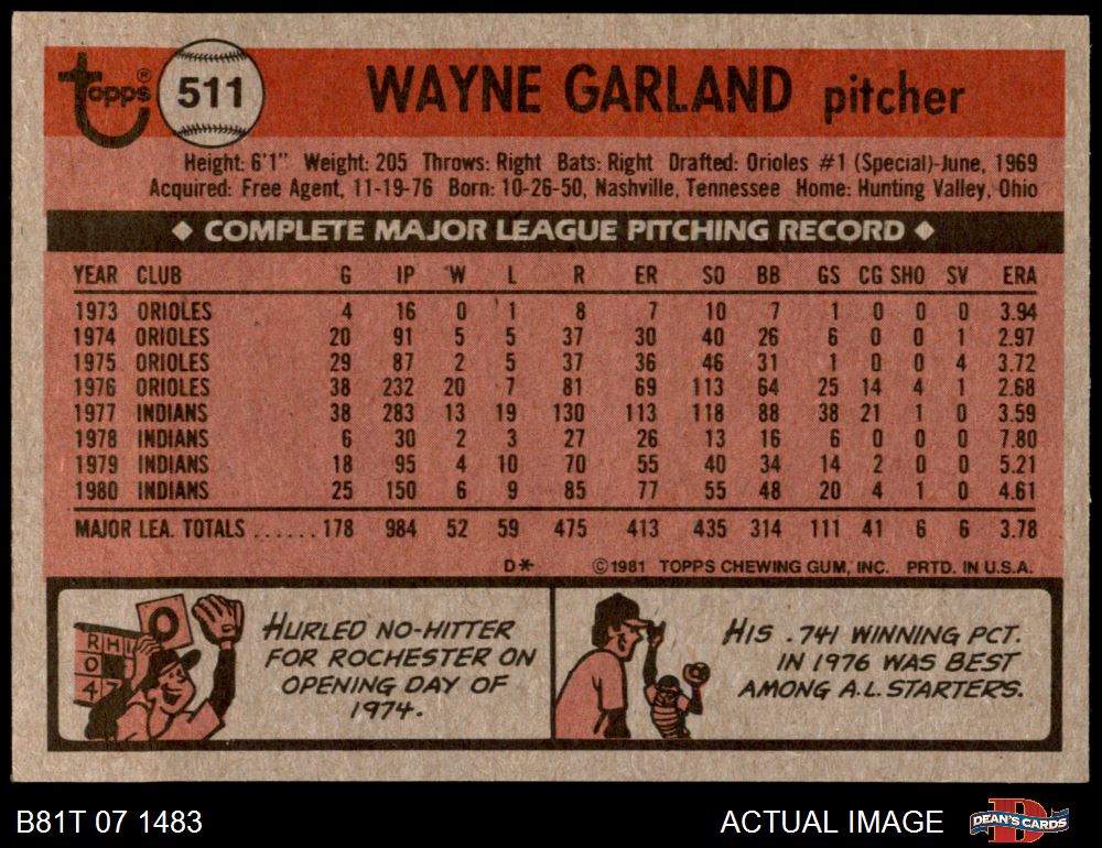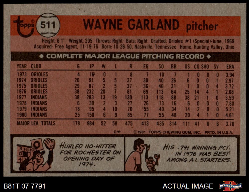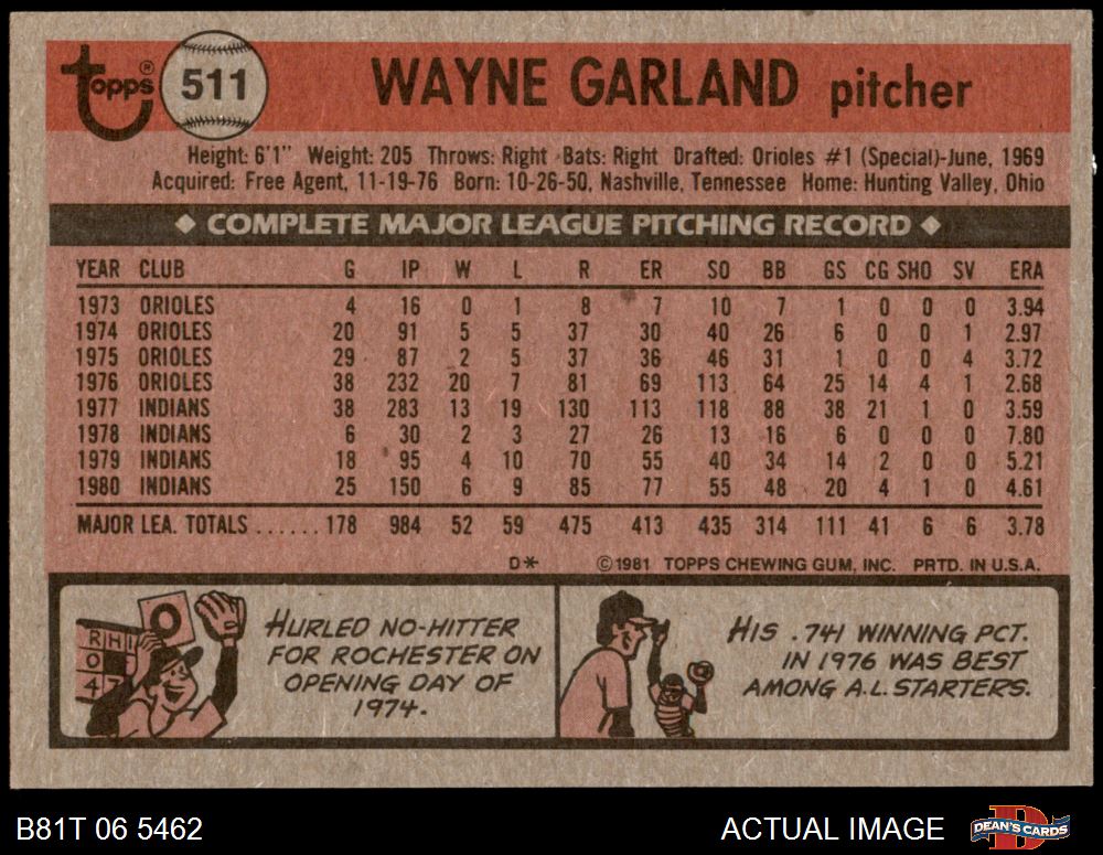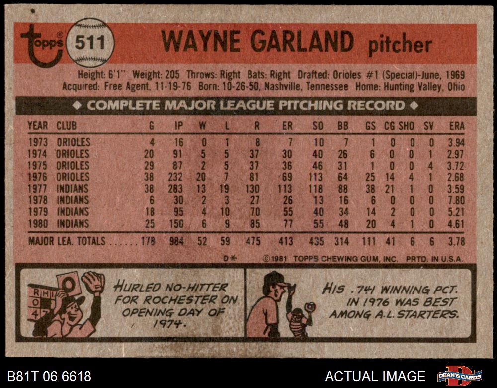 1981 Topps #511 Wayne Garland 6 - EX/MT