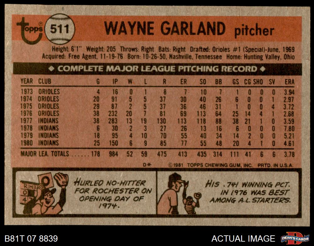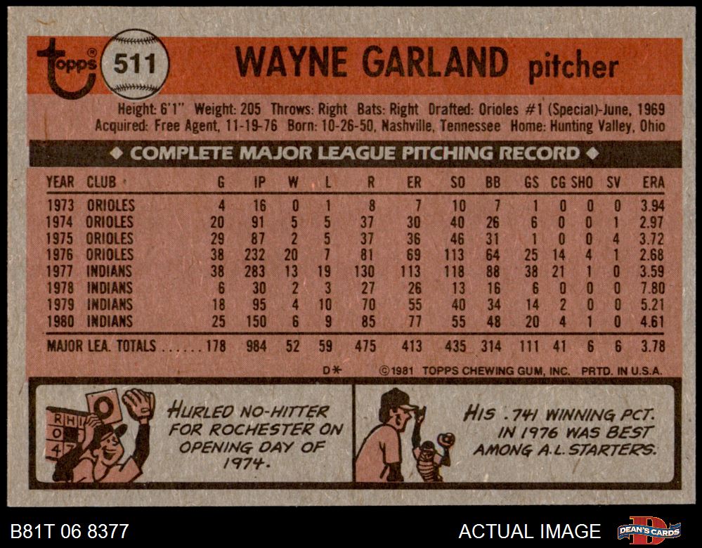 1981 Topps #511 Wayne Garland 8 - NM/MT