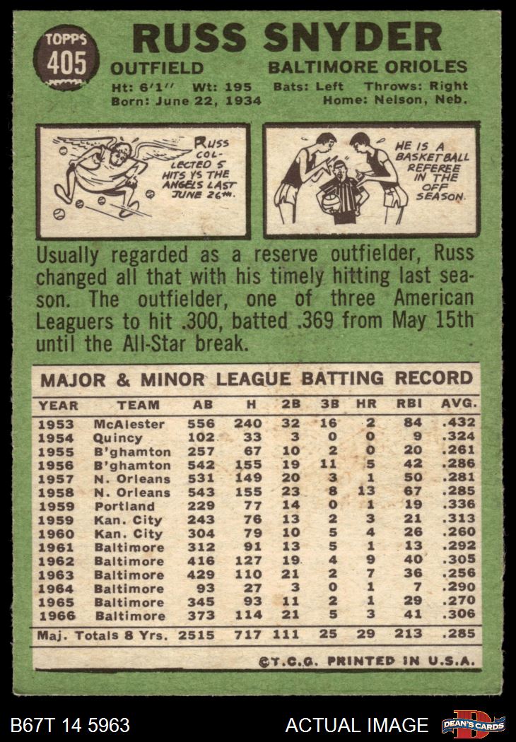 1967 Topps #405 Russ Snyder 4.5 - VG/EX+