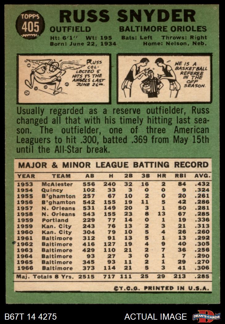 1967 Topps #405 Russ Snyder 6 - EX/MT