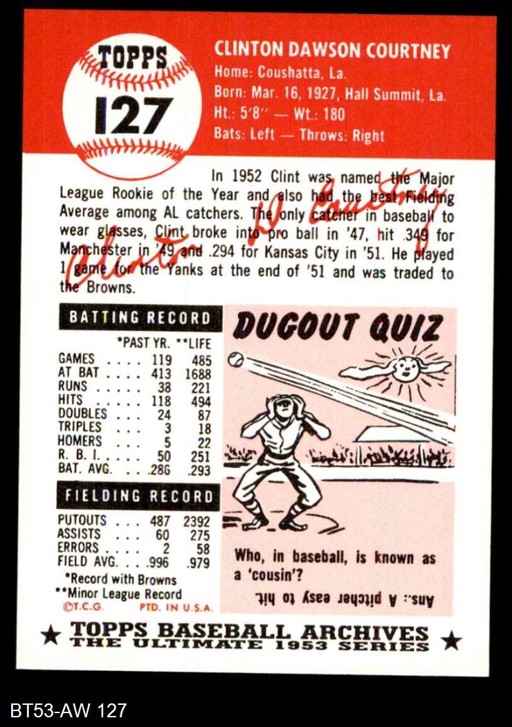 1953 Topps Archives #127 Clint Courtney