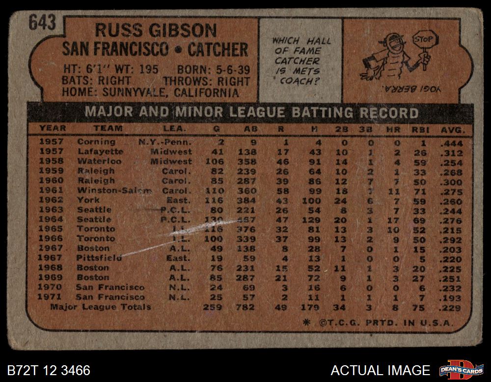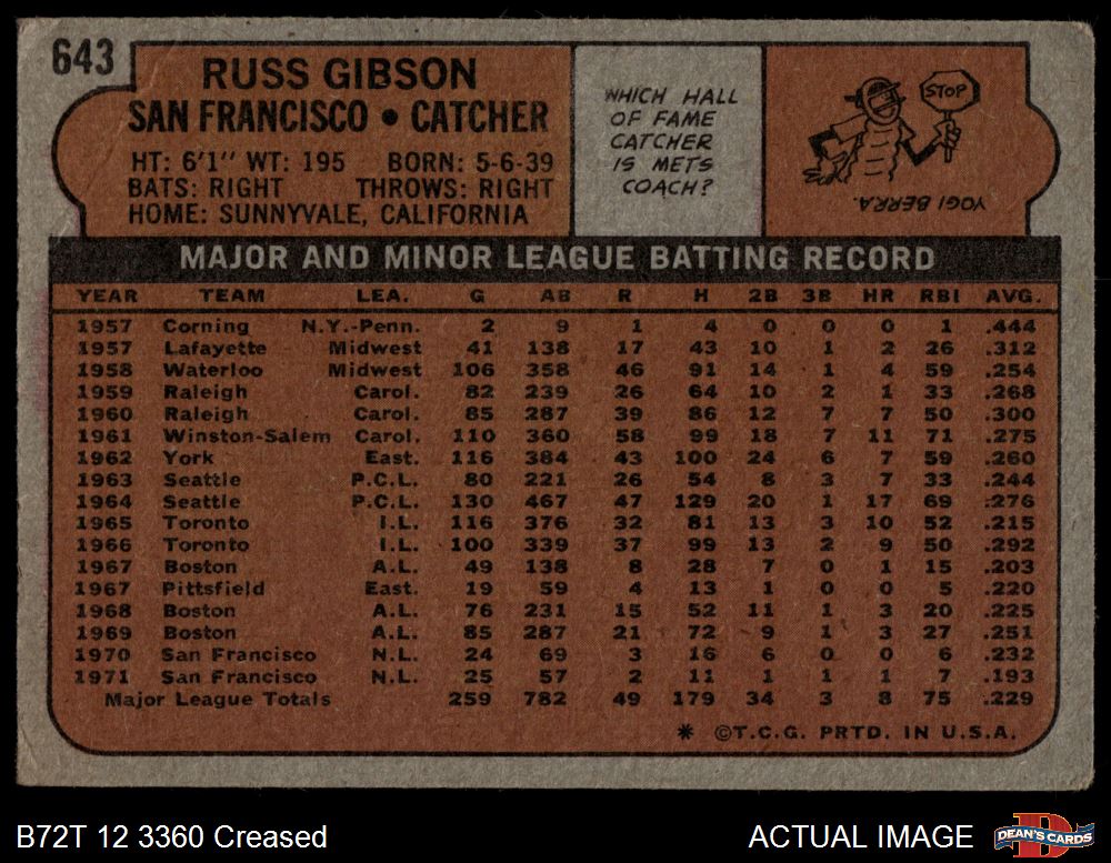 1972 Topps #643 Russ Gibson 1 - POOR