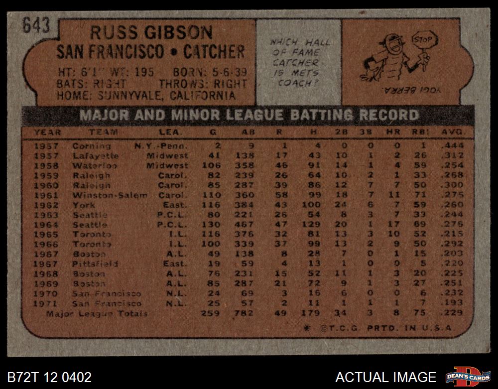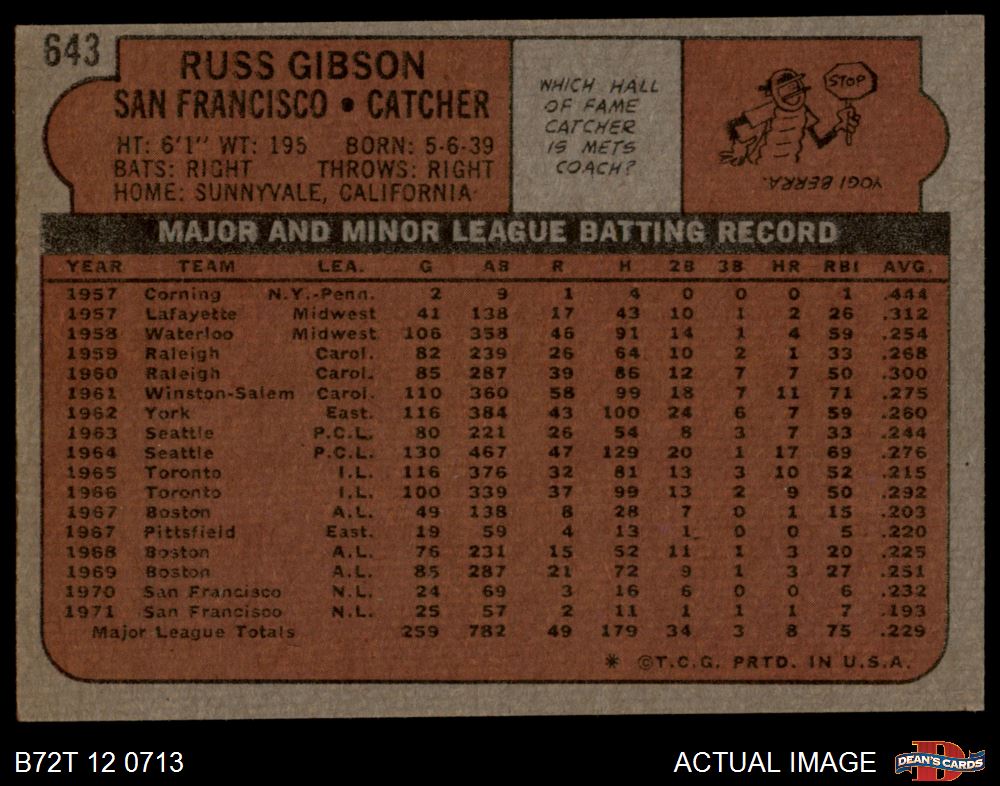 1972 Topps #643 Russ Gibson