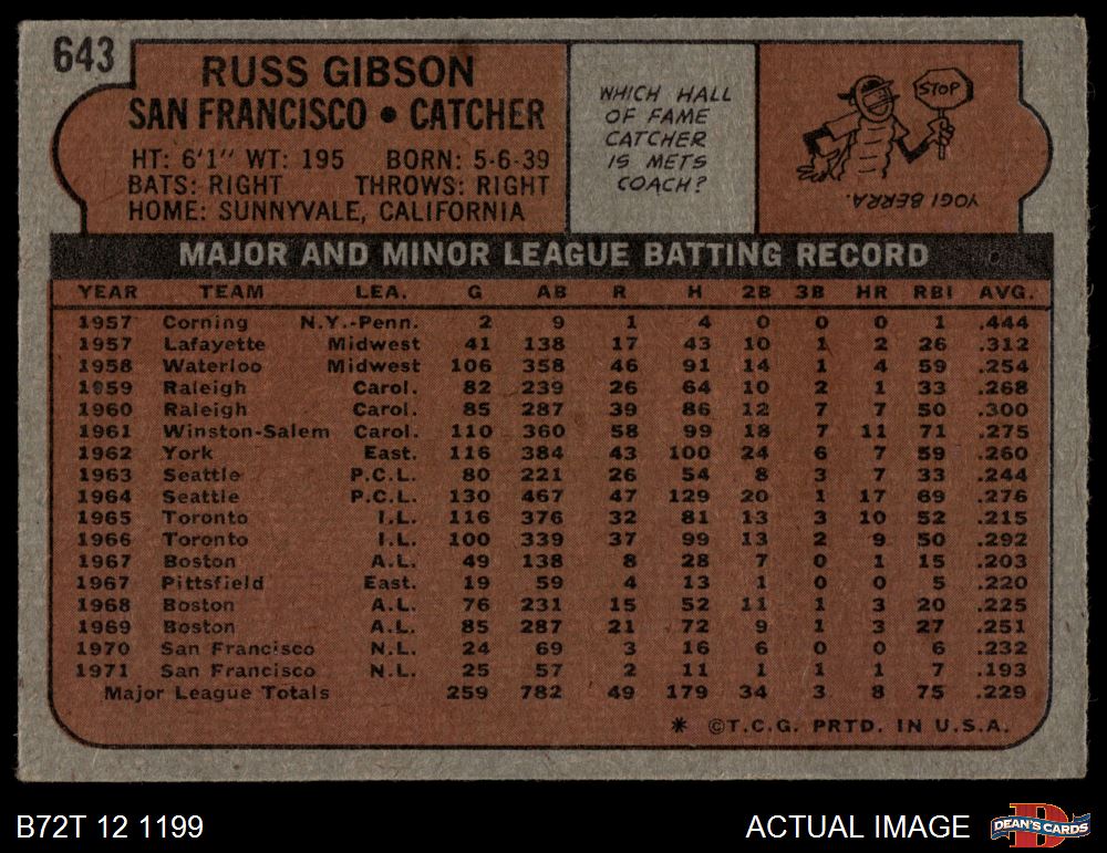 1972 Topps #643 Russ Gibson 2 - GOOD