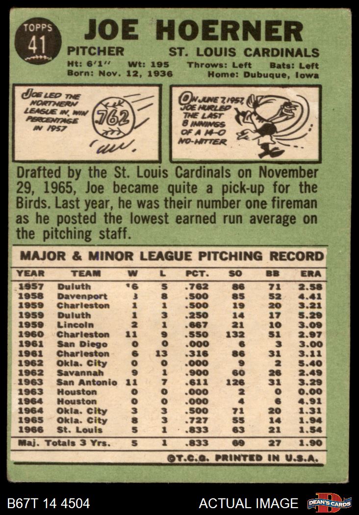 1967 Topps #41 Joe Hoerner 1.5 - FAIR