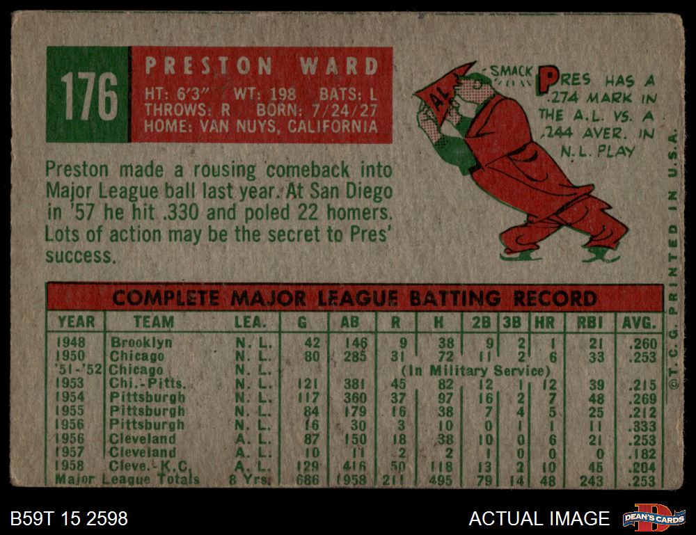 1959 Topps #176 Preston Ward 1 - POOR