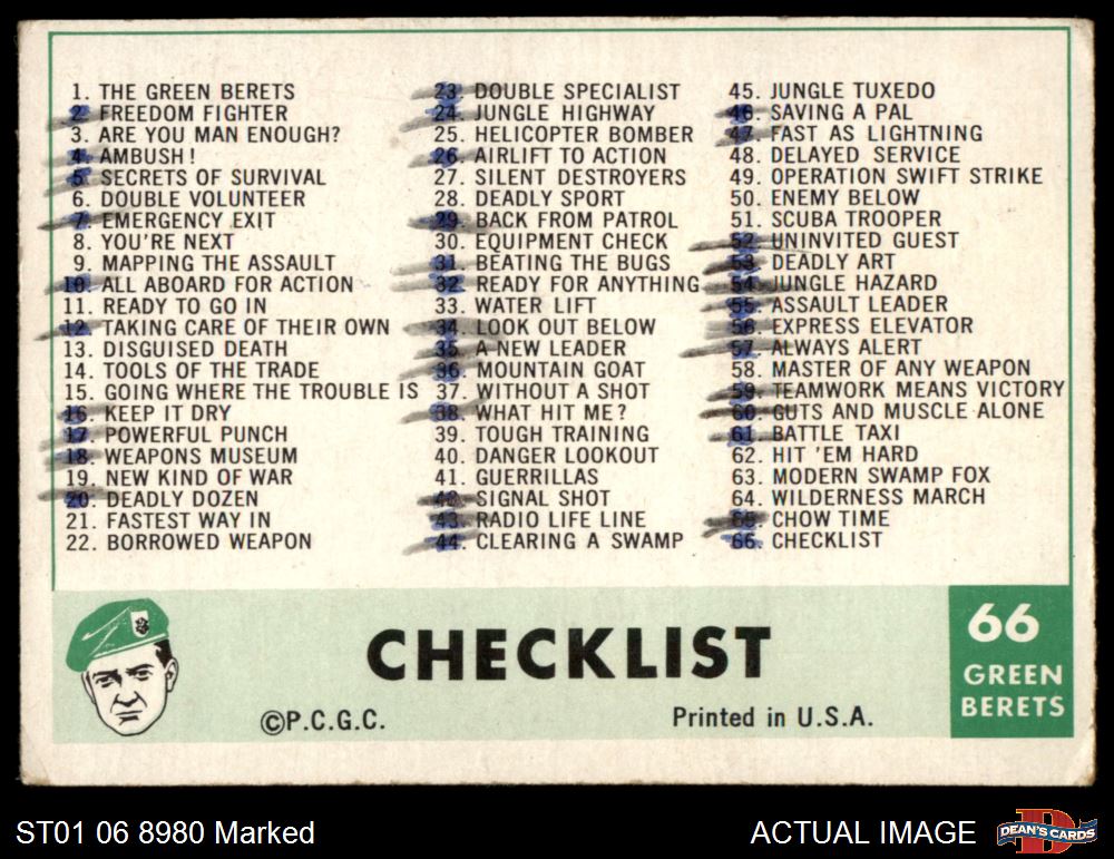 1966 Philadelphia Green Berets #66 Checklist 1 - POOR