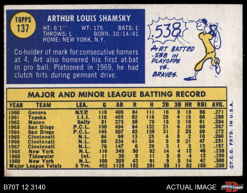 1970 Topps #137 Art Shamsky 4 - VG/EX