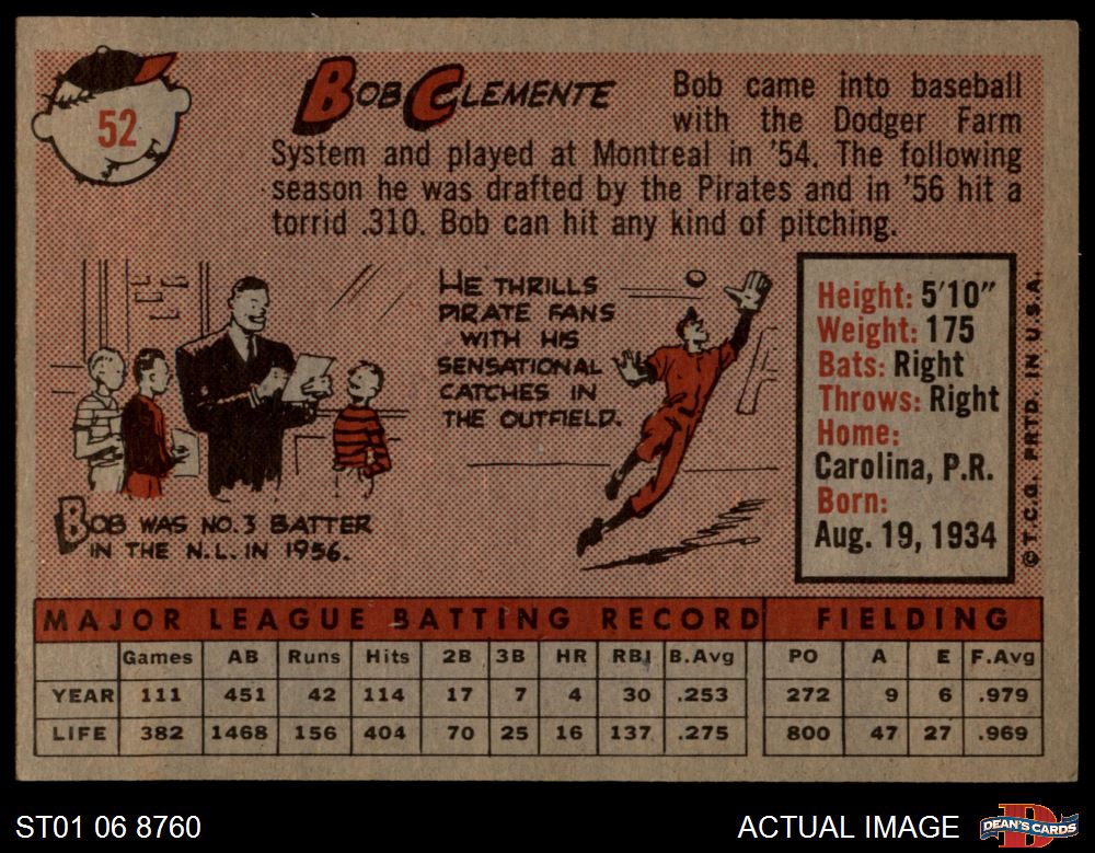 1958 Topps #52 WT Roberto Clemente 4 - VG/EX