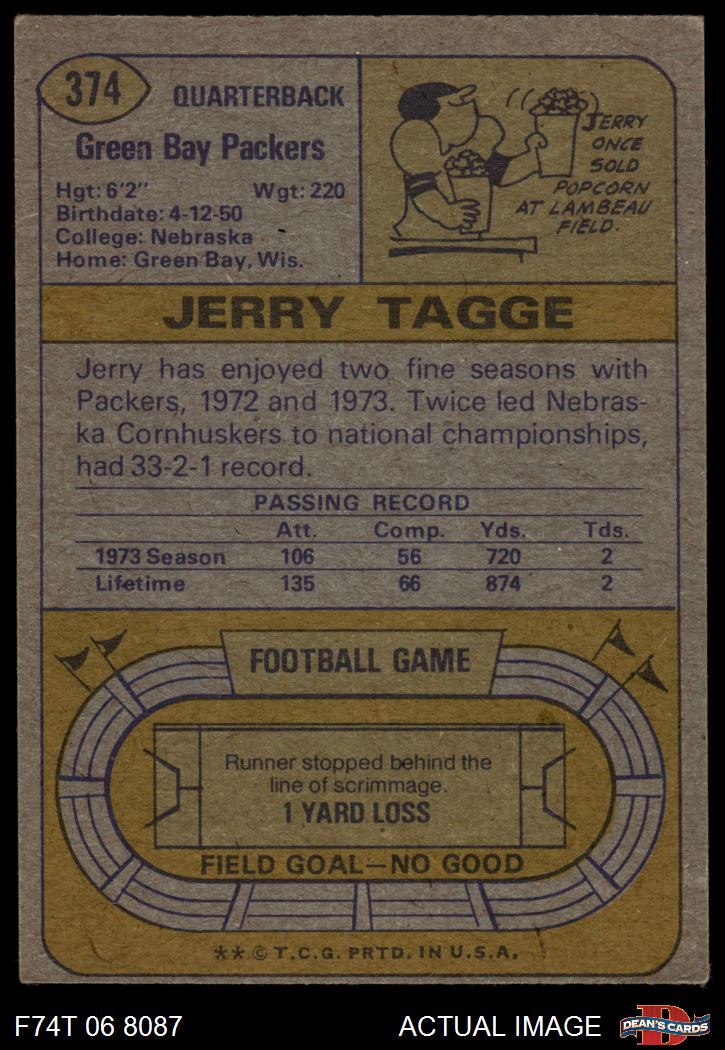 1974 Topps #374 Jerry Tagge 5 - EX