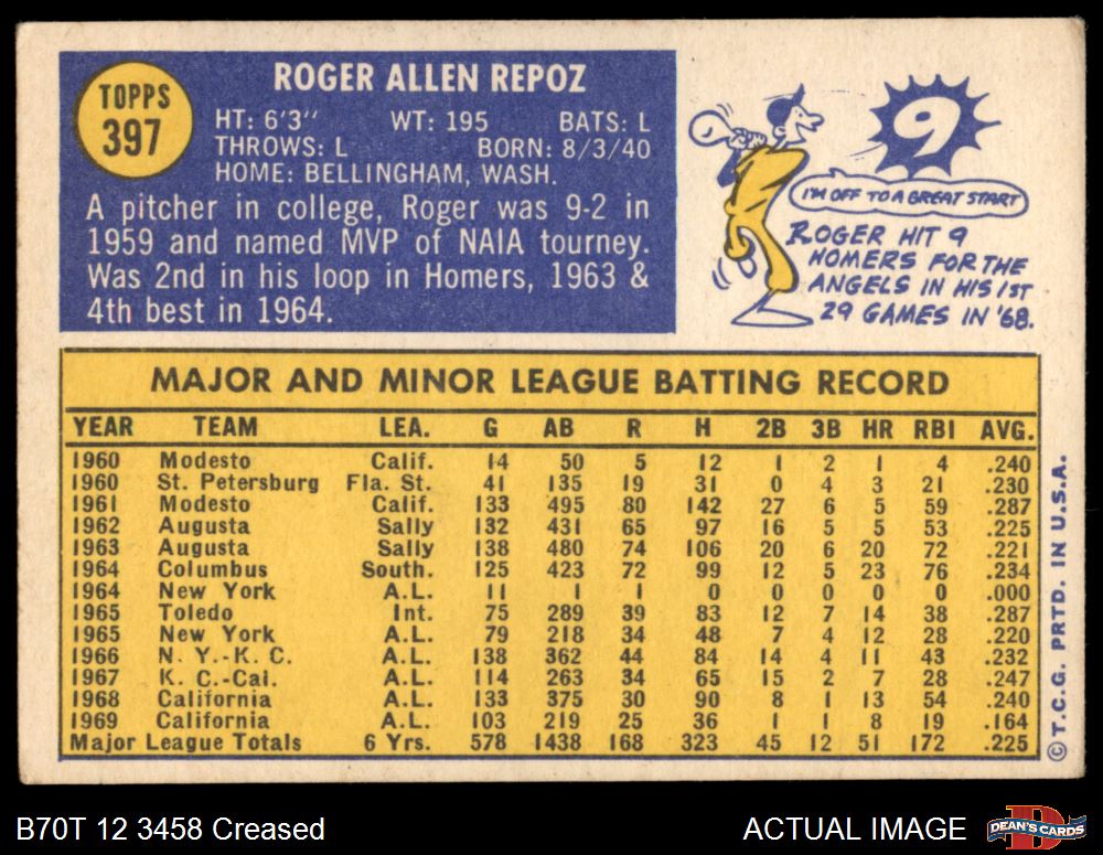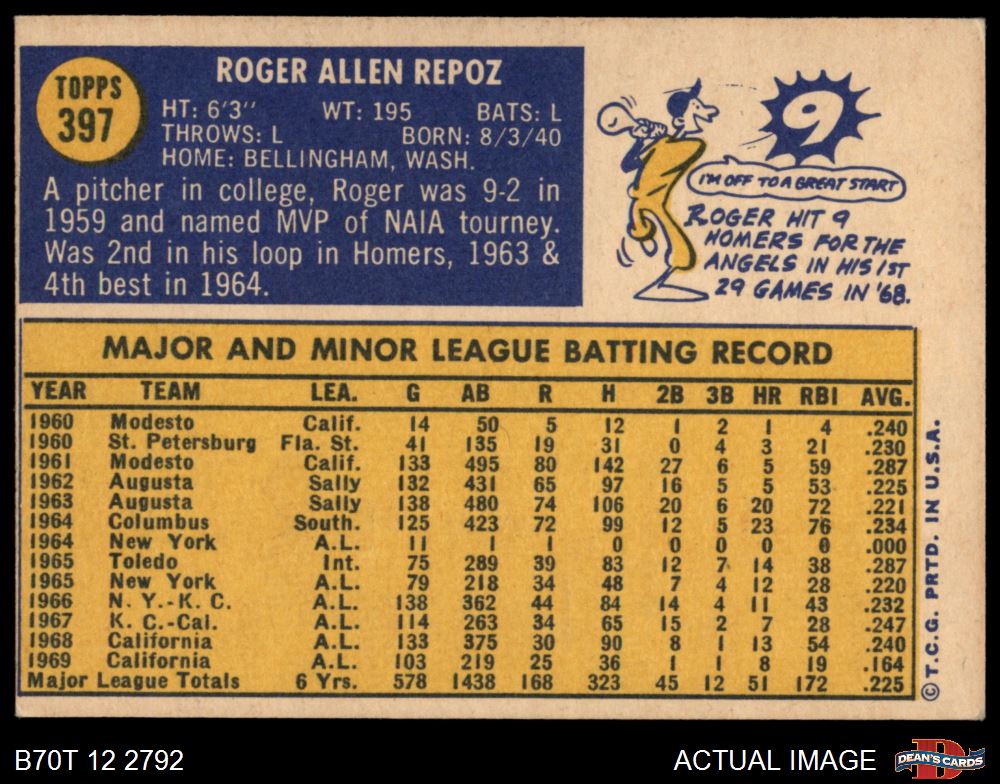 1970 Topps #397 Roger Repoz
