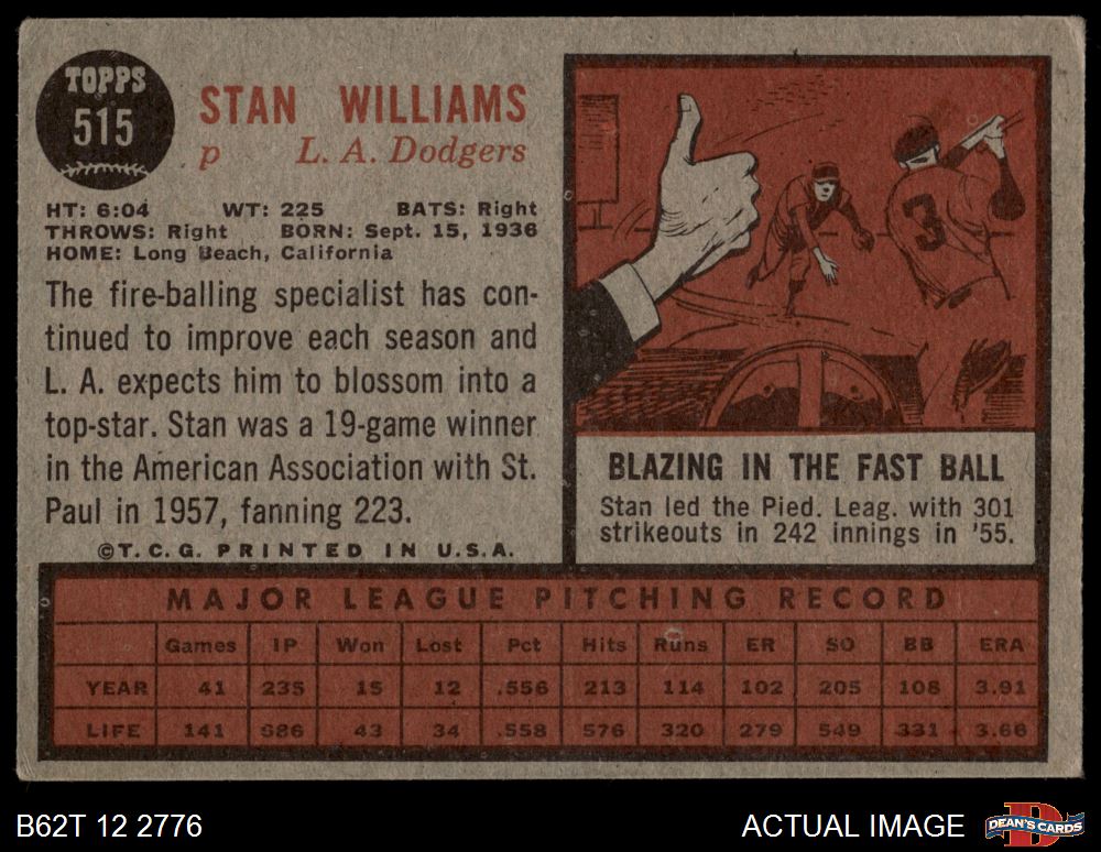 1962 Topps #515 Stan Williams 1.5 - FAIR
