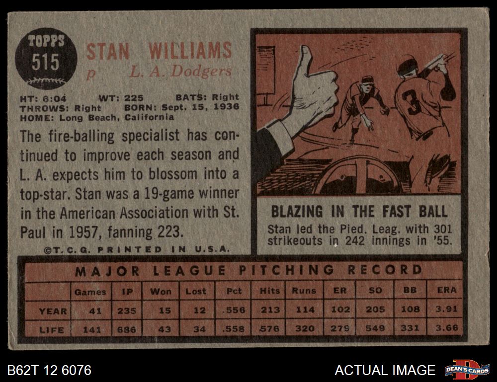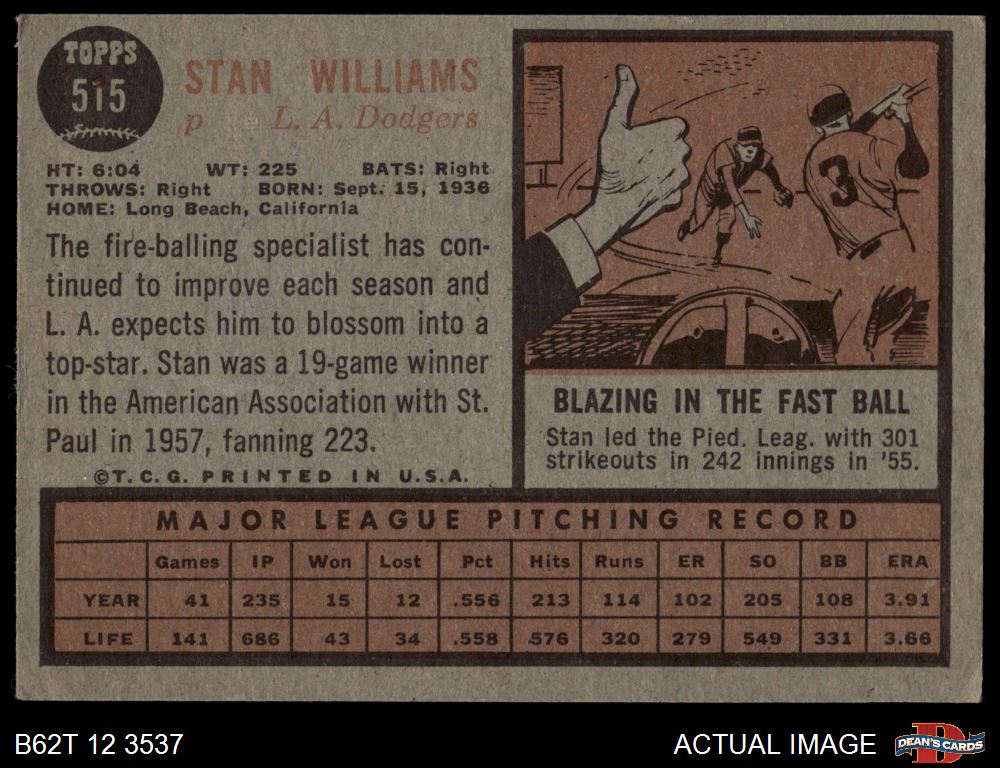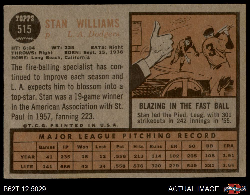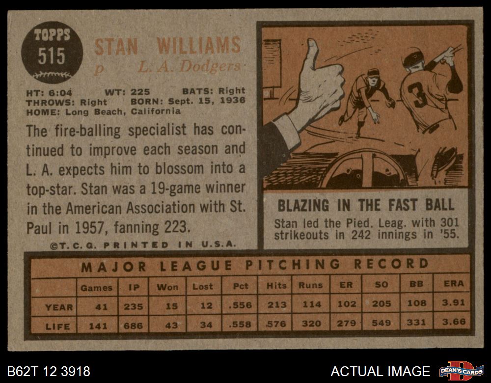 1962 Topps #515 Stan Williams
