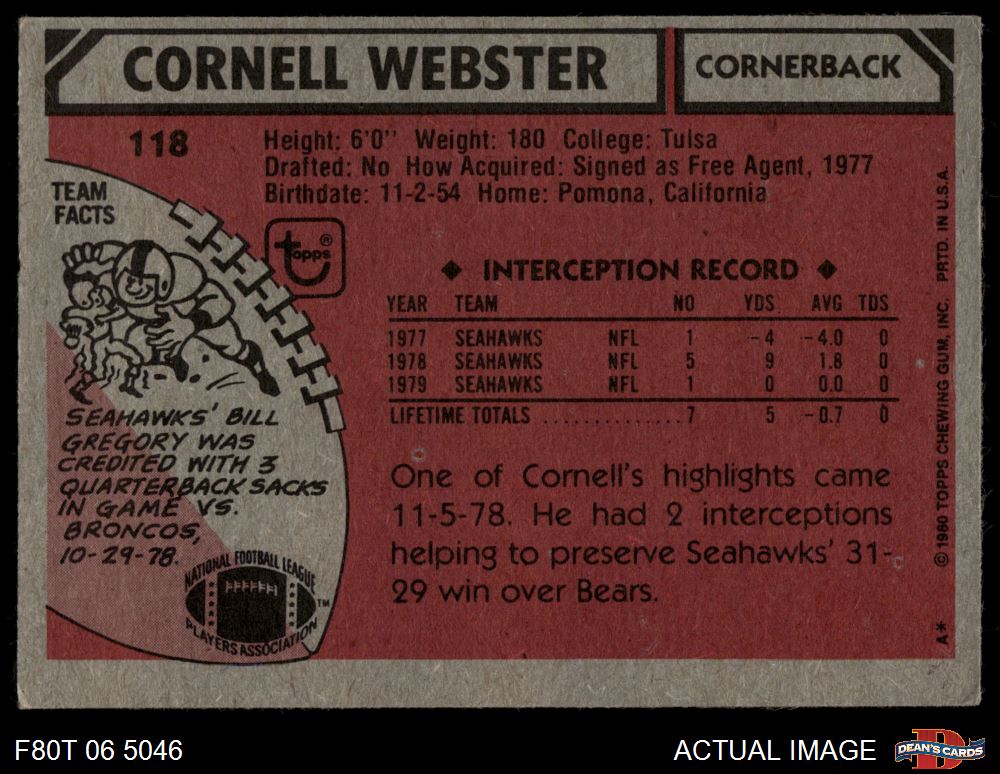 1980 Topps #118 Cornell Webster 4 - VG/EX