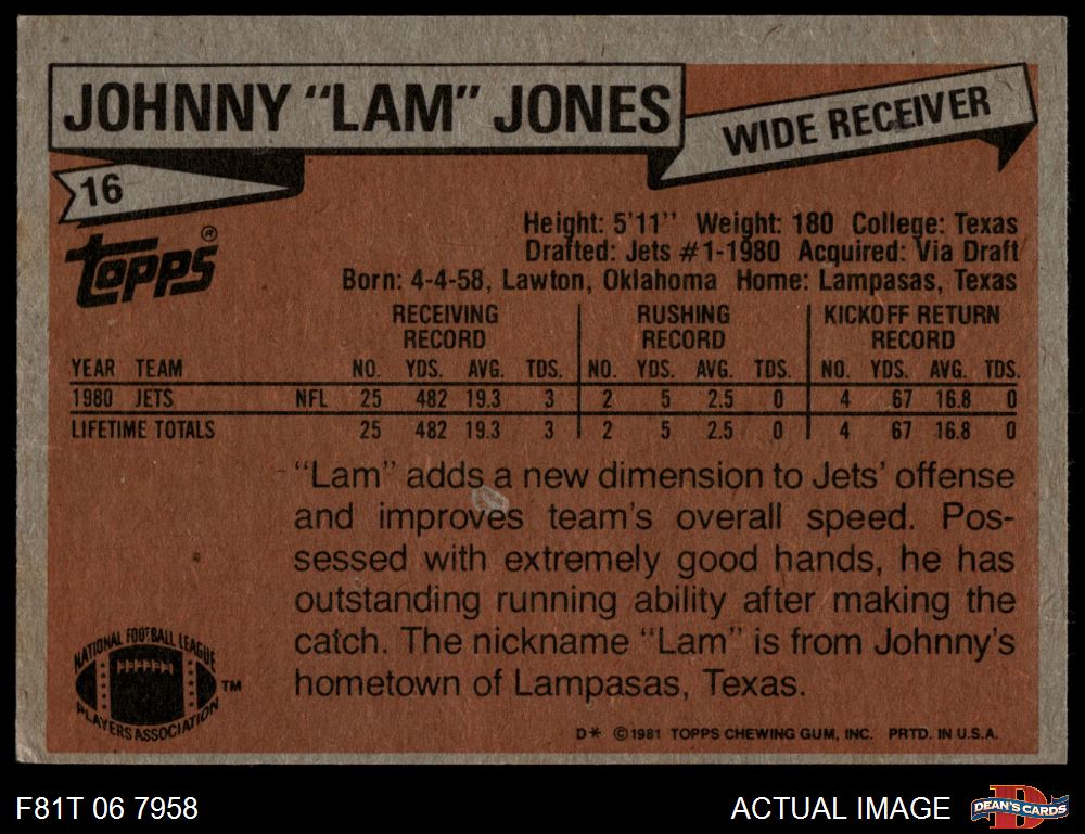 1981 Topps #16 Johnny Lam Jones 3 - VG