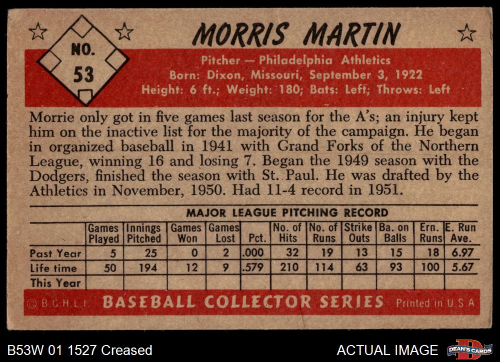 1953 Bowman B&W #53 Morrie Martin 3 - VG