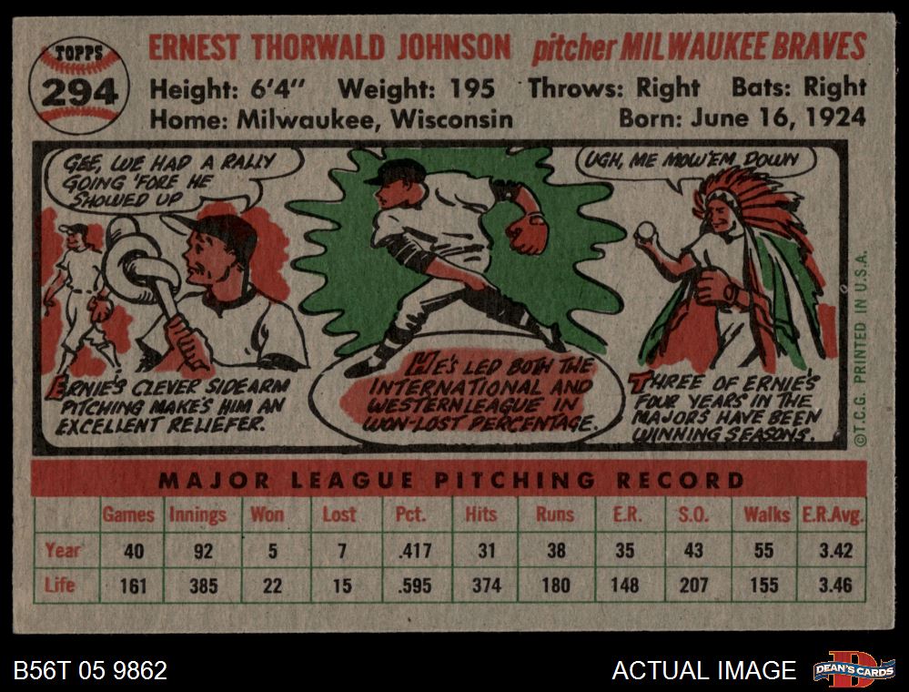 1956 Topps #294 Ernie Johnson 5 - EX