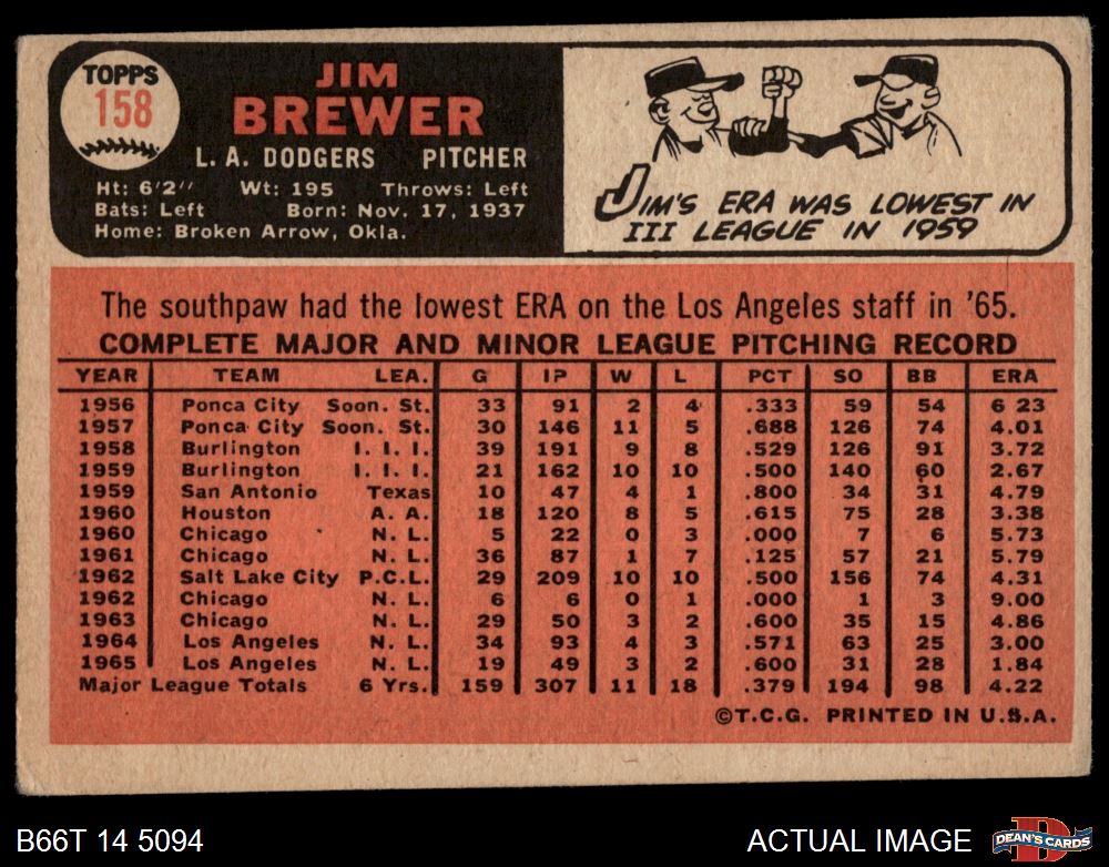 1966 Topps #158 Jim Brewer