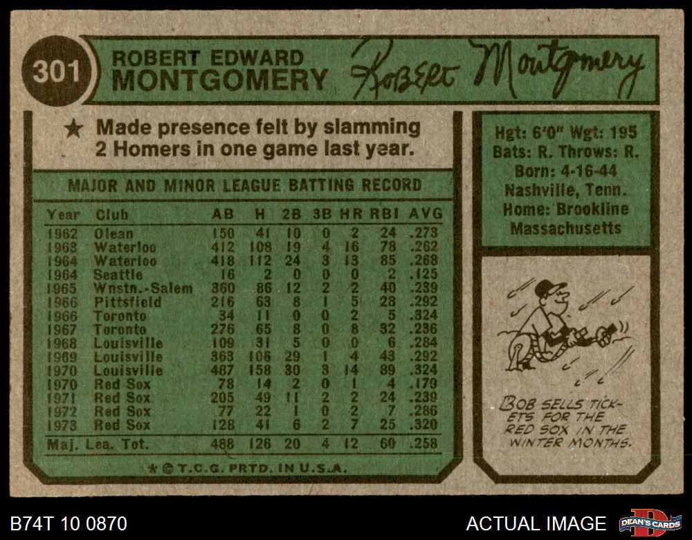 1974 Topps #301 Bob Montgomery 6 - EX/MT