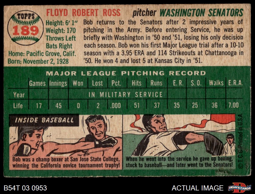 1954 Topps #189 Line can be through or not through last S in Ross Bob Ross 1 - POOR