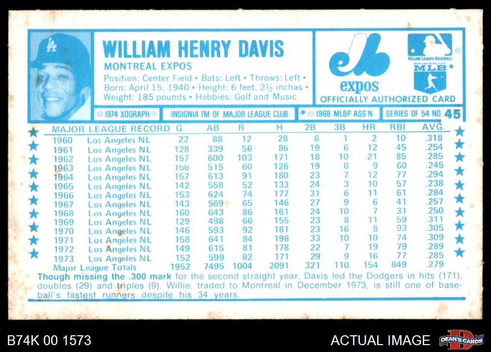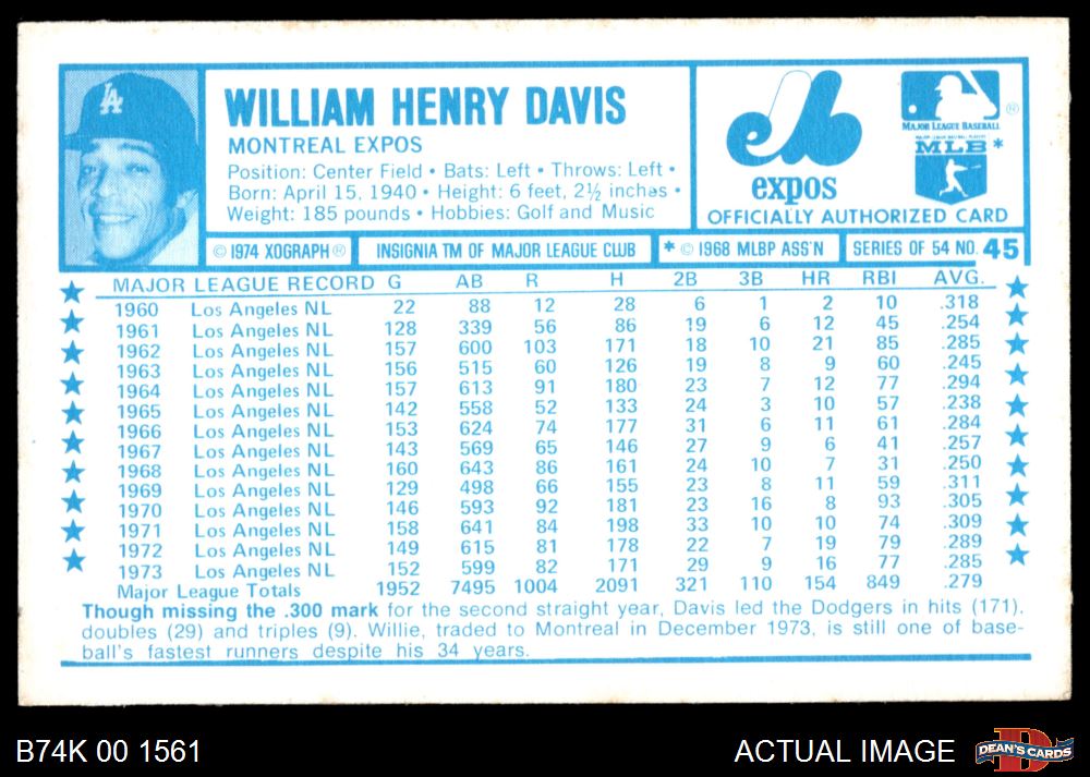 1974 Kellogg's #45 Willie Davis 2 - GOOD