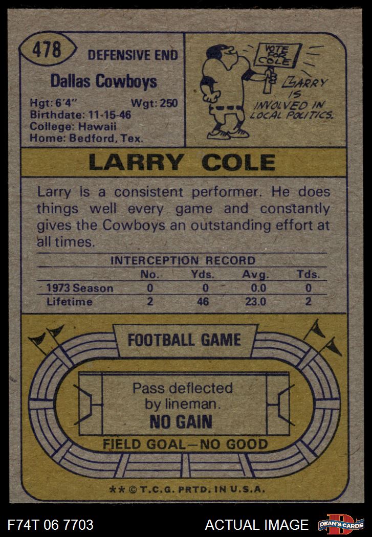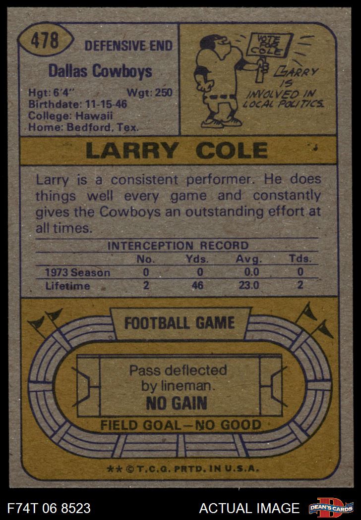 1974 Topps #478 Larry Cole