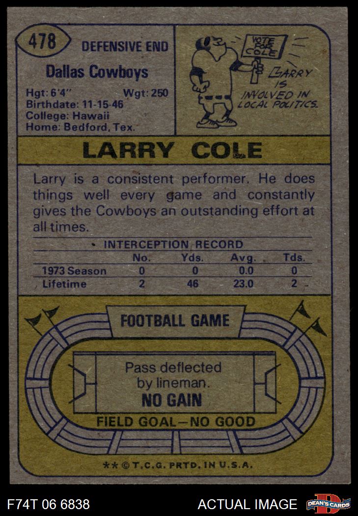 1974 Topps #478 Larry Cole 6 - EX/MT