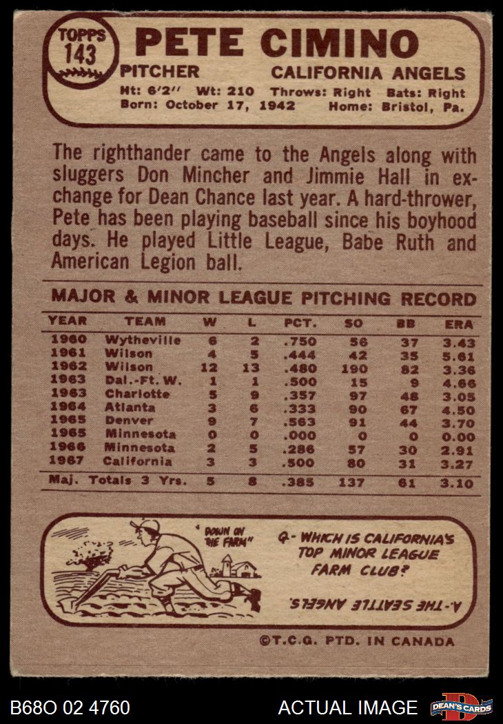1968 O-Pee-Chee #143 Pete Cimino 4 - VG/EX