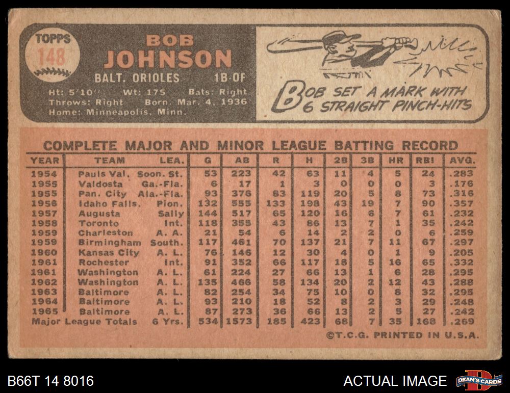 1966 Topps #148 Bob Johnson 1.5 - FAIR