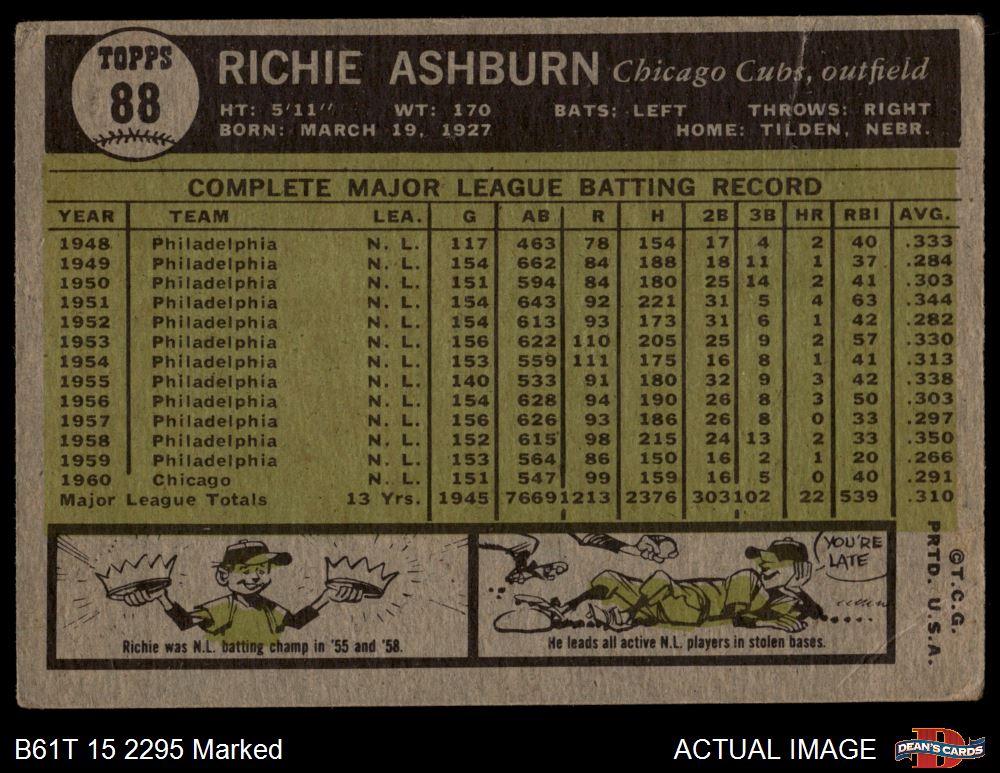 1961 Topps #88 Richie Ashburn 1 - POOR