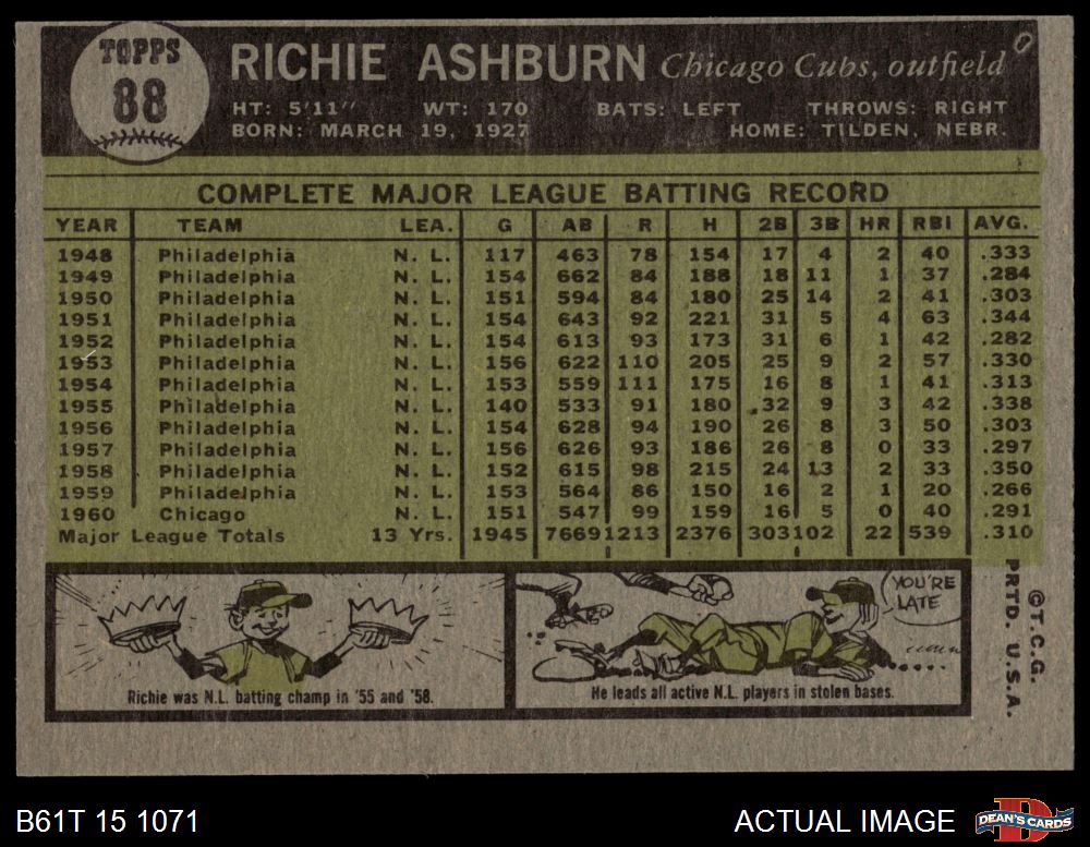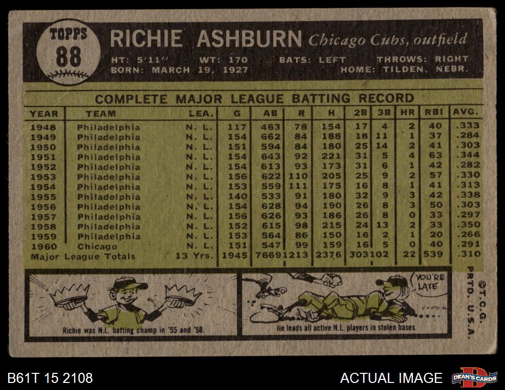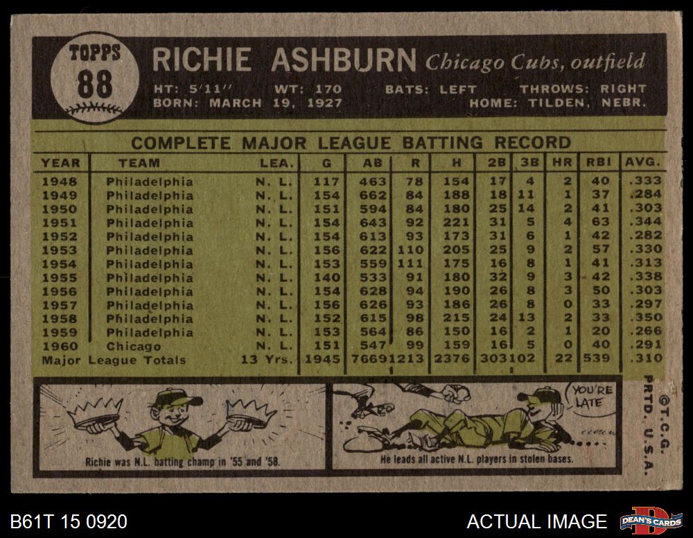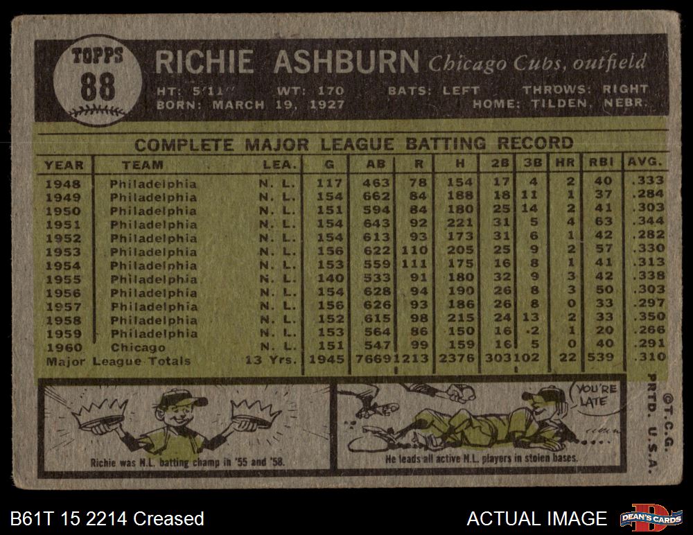1961 Topps Baseball Cards (10,646 available)1961 Topps Cubs (567 available)