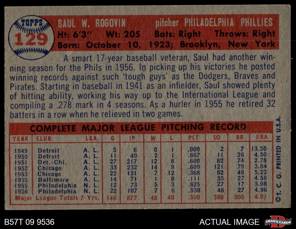 1957 Topps #129 Saul Rogovin 4 - VG/EX