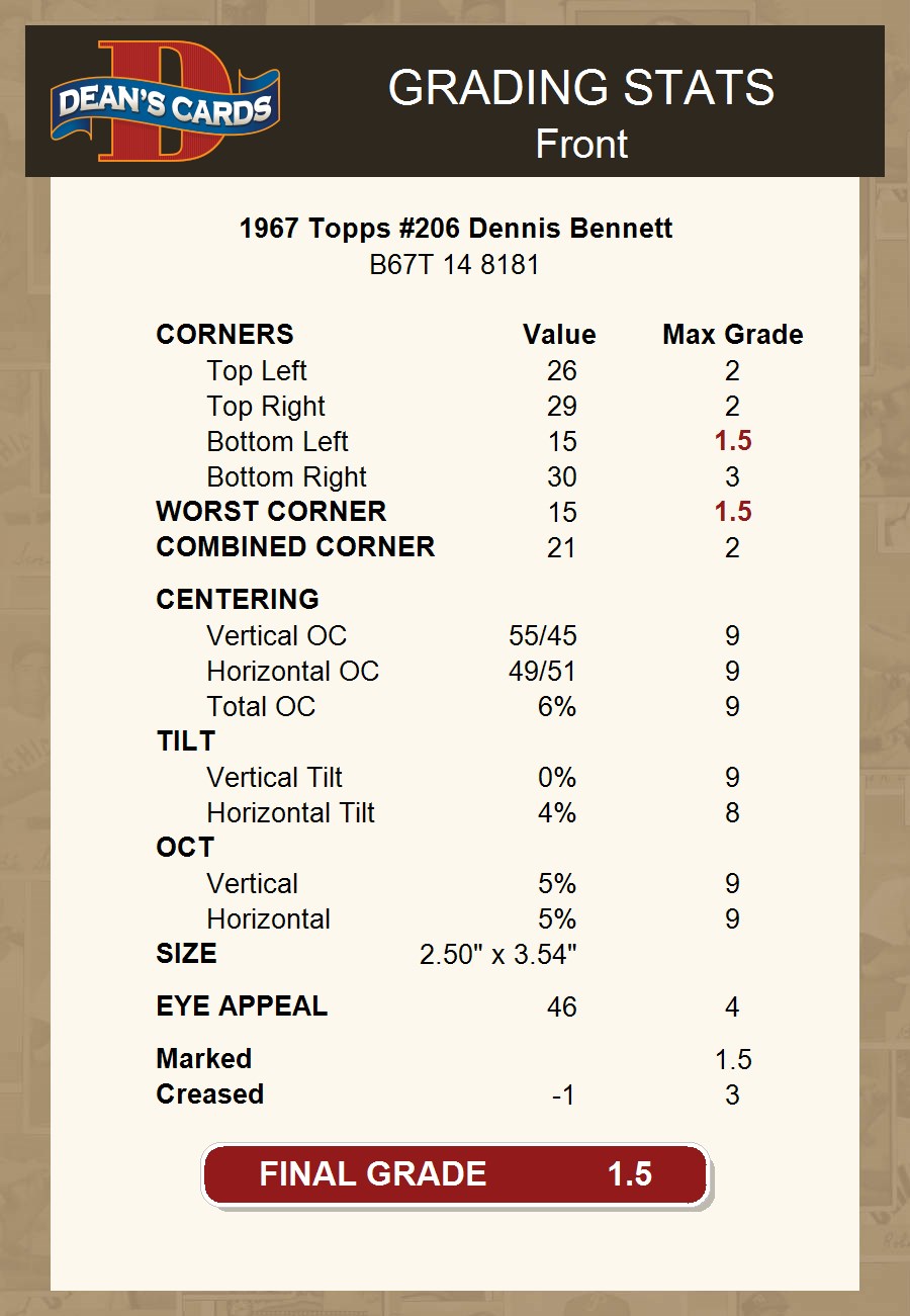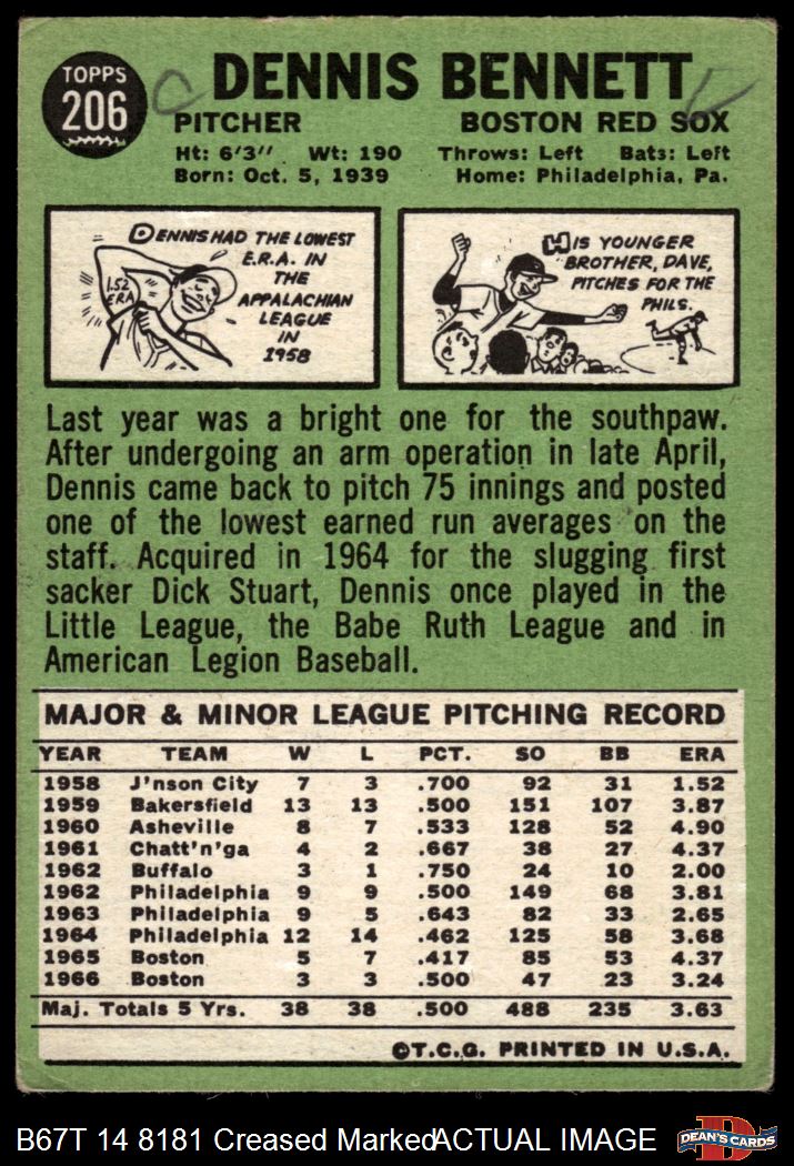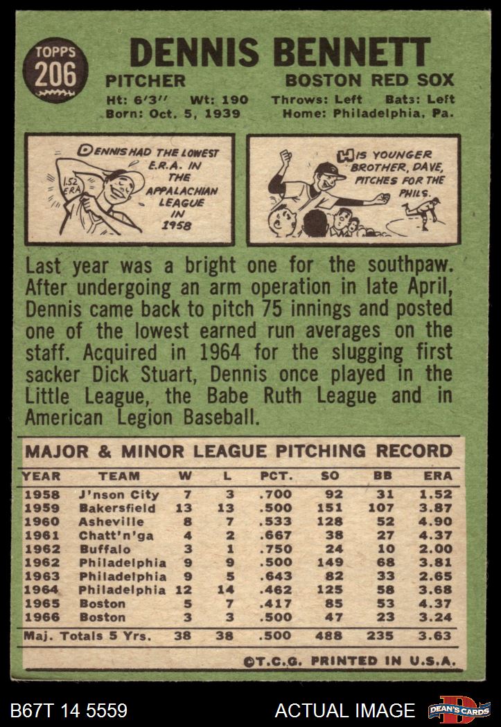 1967 Topps #206 Dennis Bennett