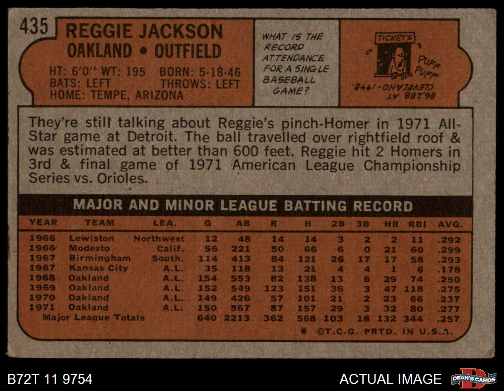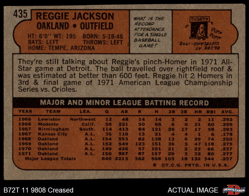 1972 Topps #435 Reggie Jackson 2 - GOOD