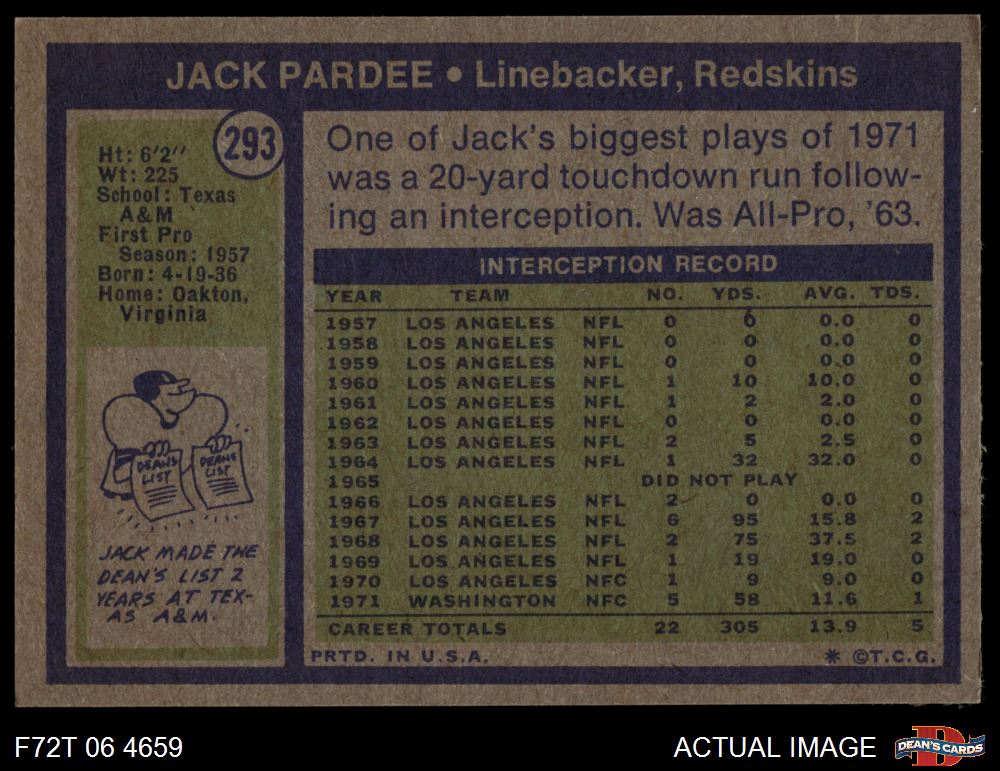 1972 Topps #293 Jack Pardee 2 - GOOD