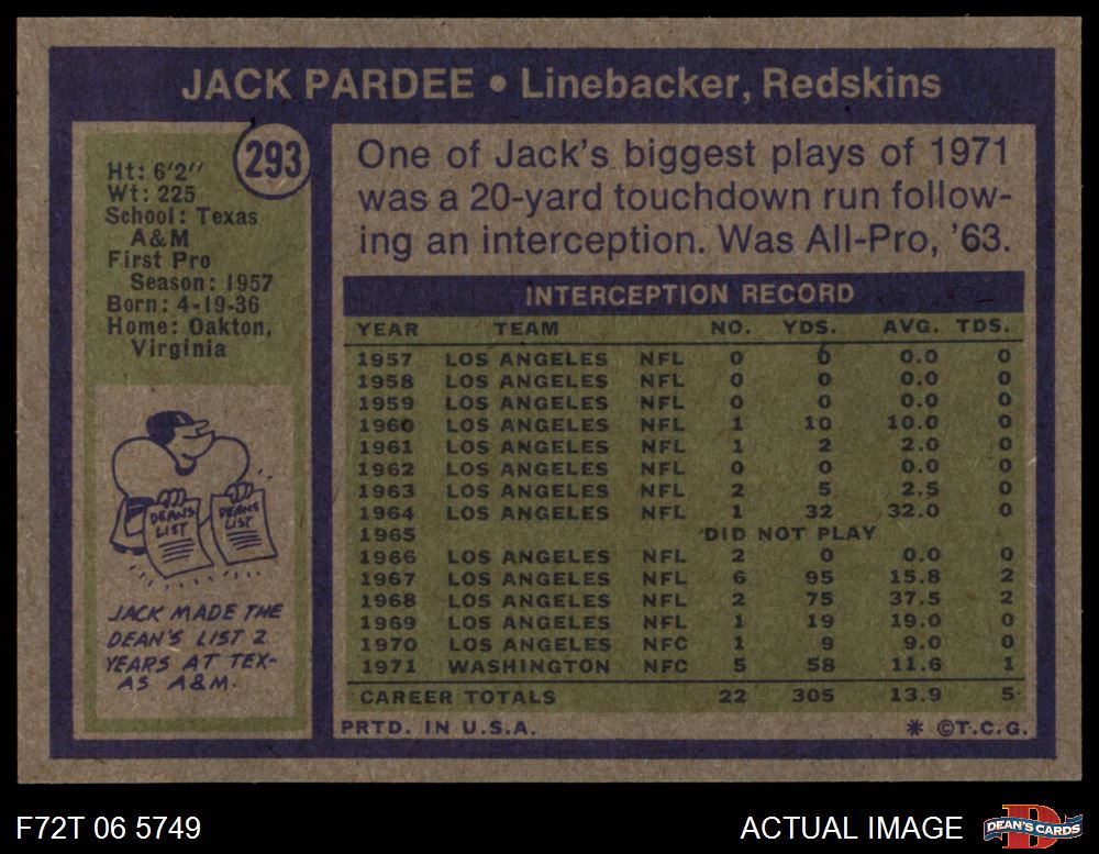 1972 Topps #293 Jack Pardee 8.5 - NM/MT+