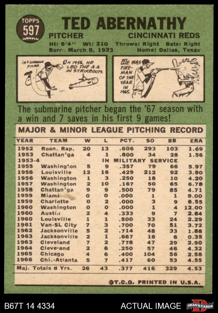 1967 Topps #597 Ted Abernathy 6 - EX/MT