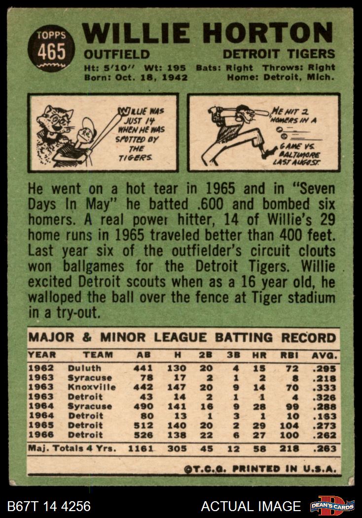 1967 Topps #465 Willie Horton 4 - VG/EX