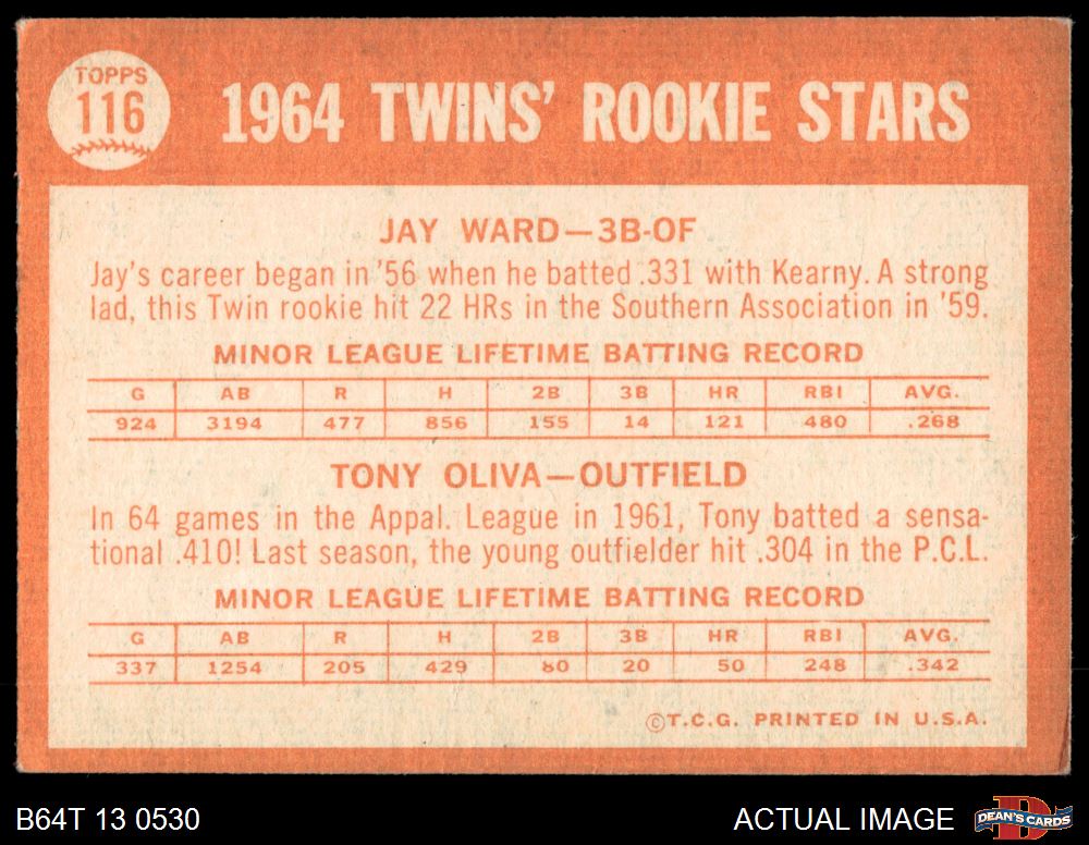 1964 Topps #116 - Tony Oliva / Jay Ward Twins Rookies 3 - VG