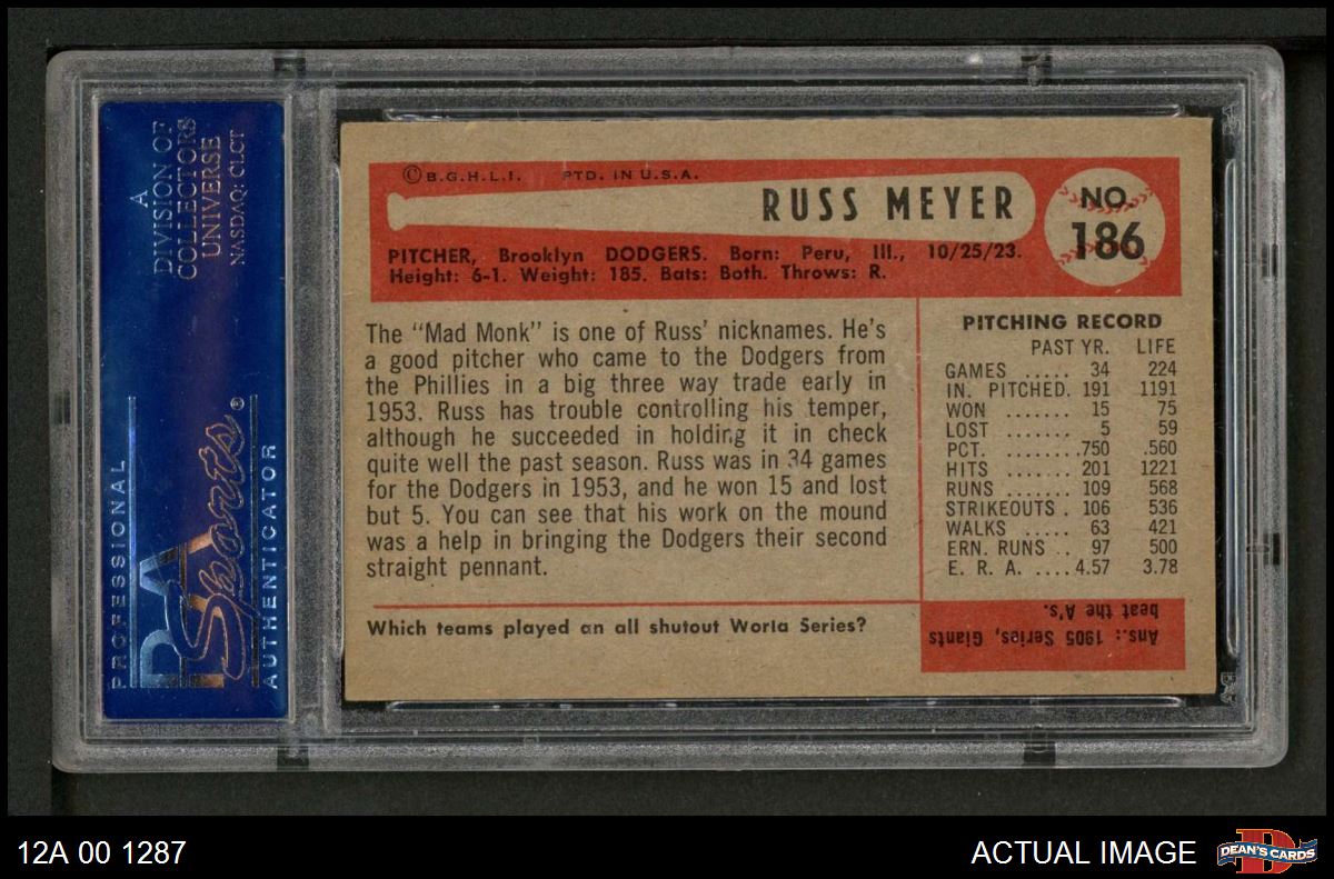 1954 Bowman #186 Russ Meyer PSA 8 - NM/MT