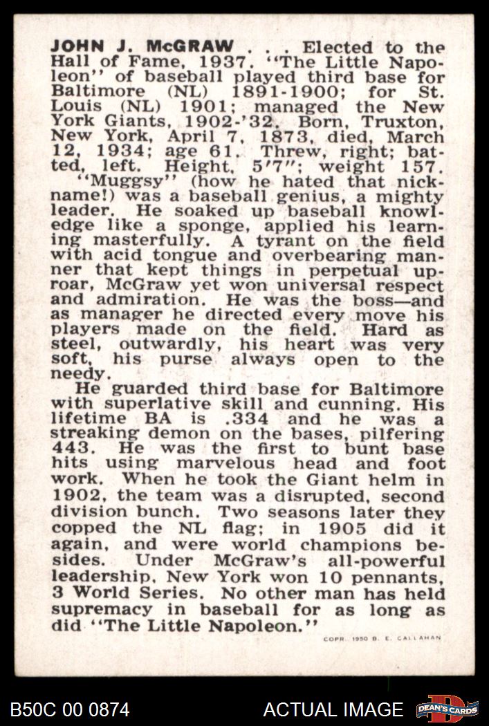 1950 Callahan Hall of Fame John McGraw 6 - EX/MT