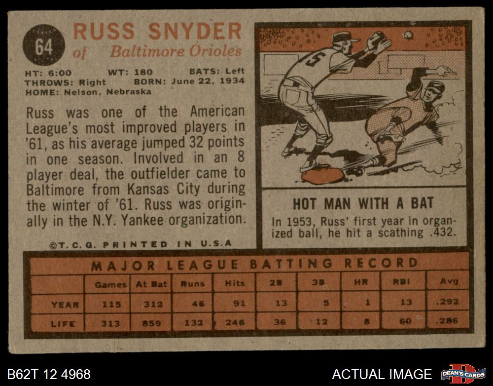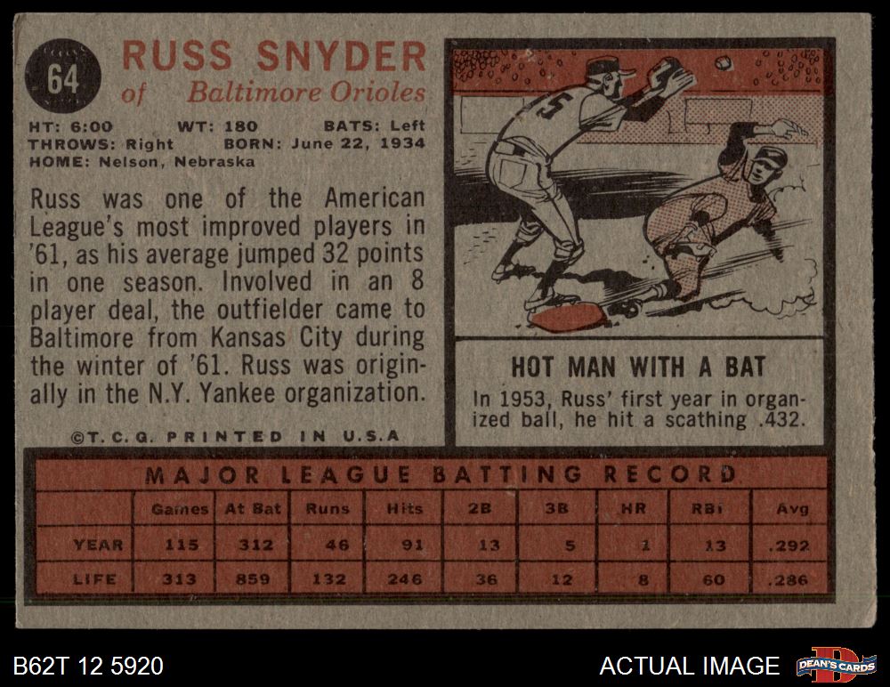 1962 Topps #64 Russ Snyder