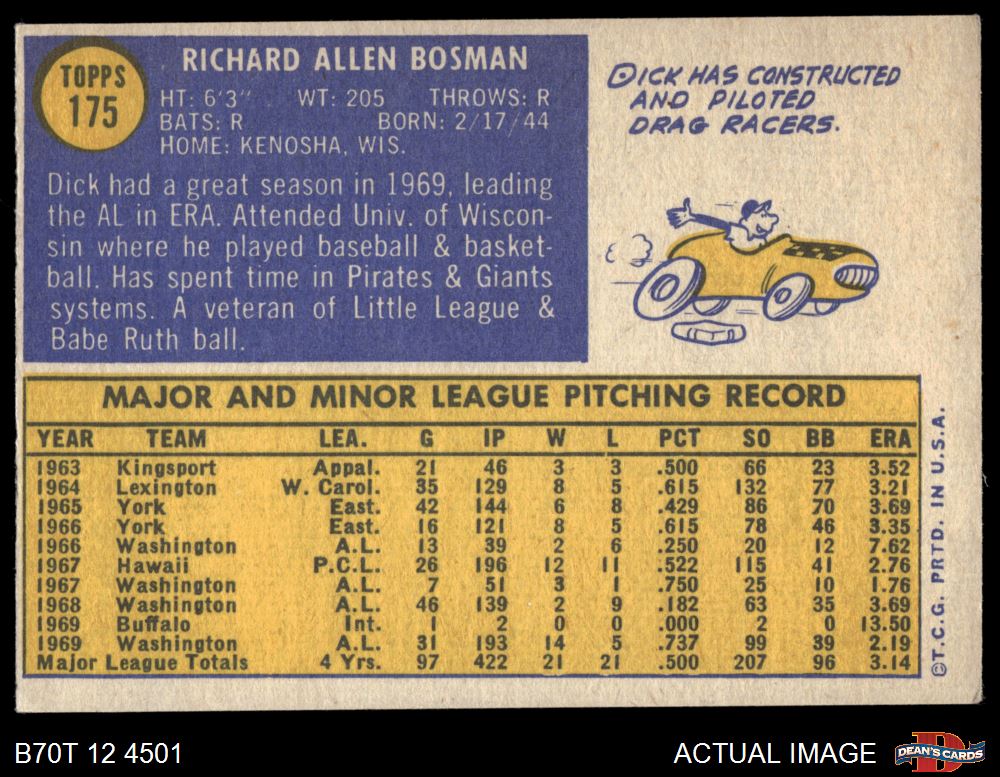 1970 Topps #175 Dick Bosman 4 - VG/EX
