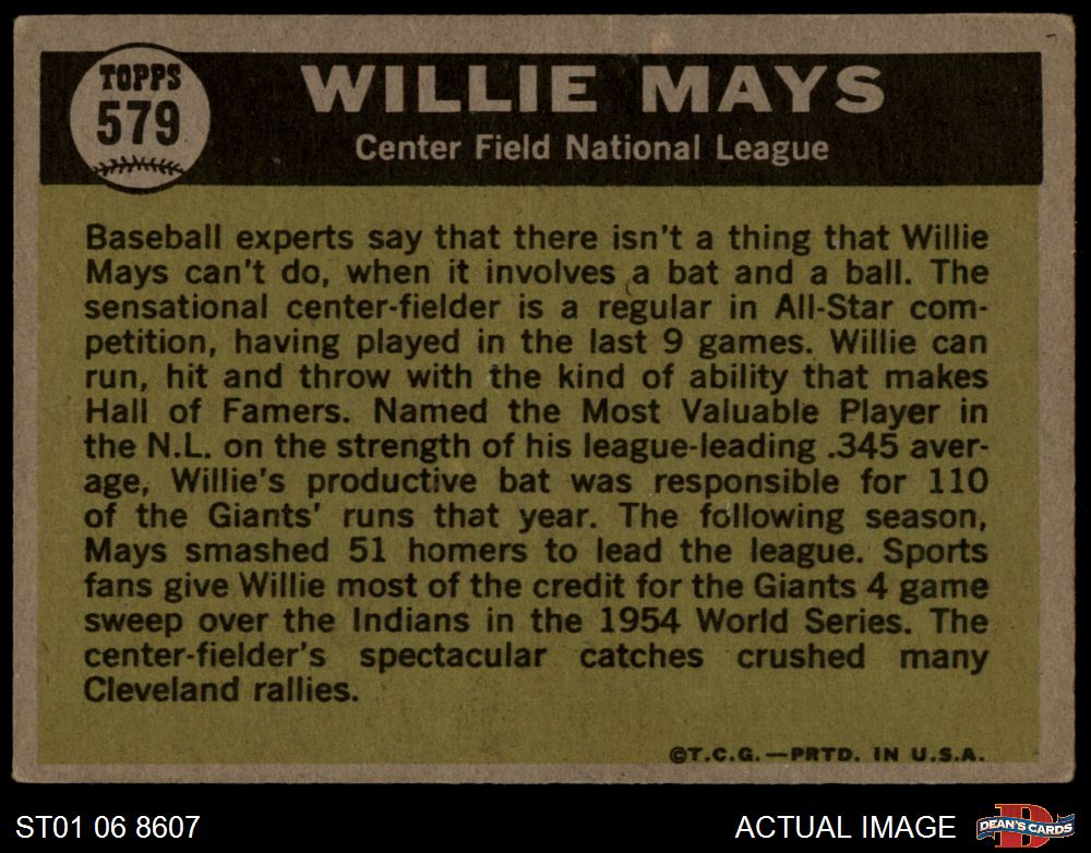 1961 Topps #579 - Willie Mays All-Star 3 - VG
