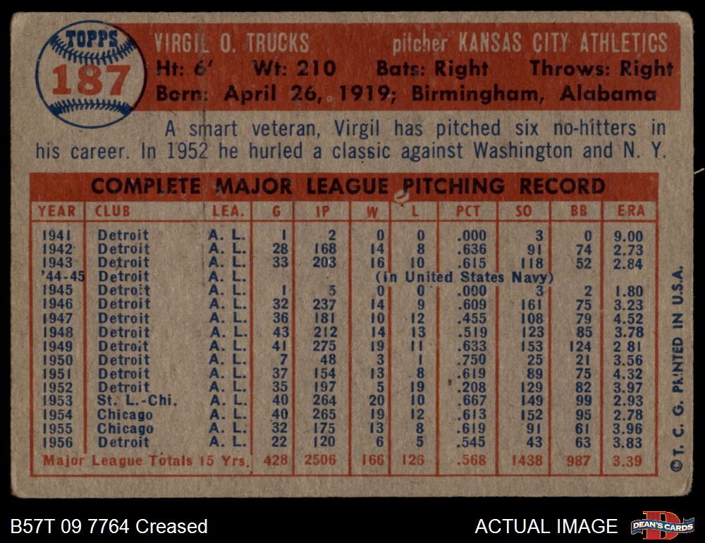 1957 Topps #187 Virgil Trucks Front Thumbnail