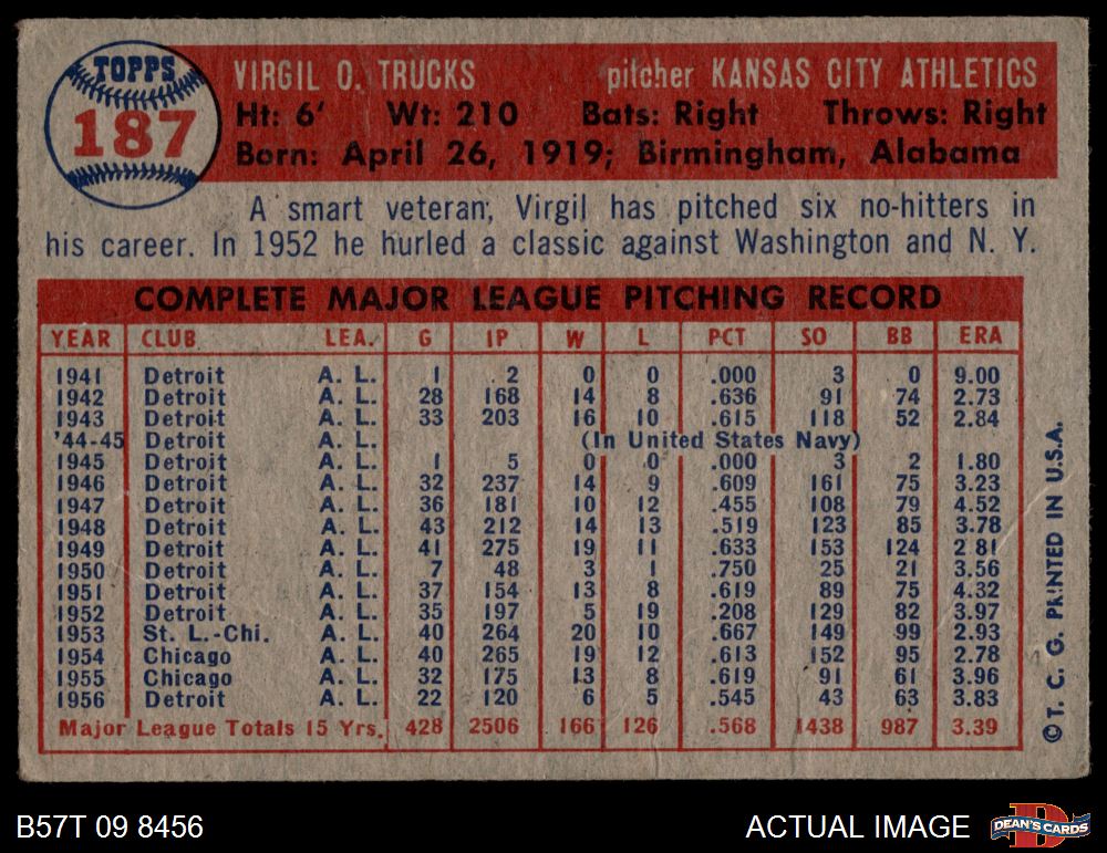 1957 Topps #187 Virgil Trucks 2 - GOOD