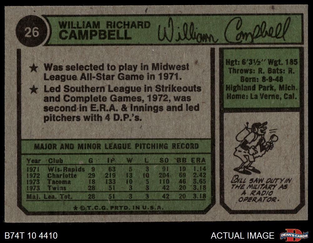 1974 Topps #26 Bill Campbell 6 - EX/MT